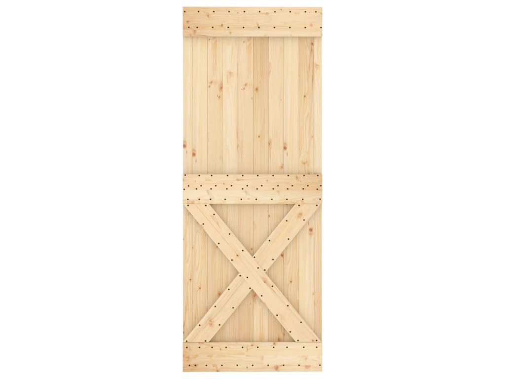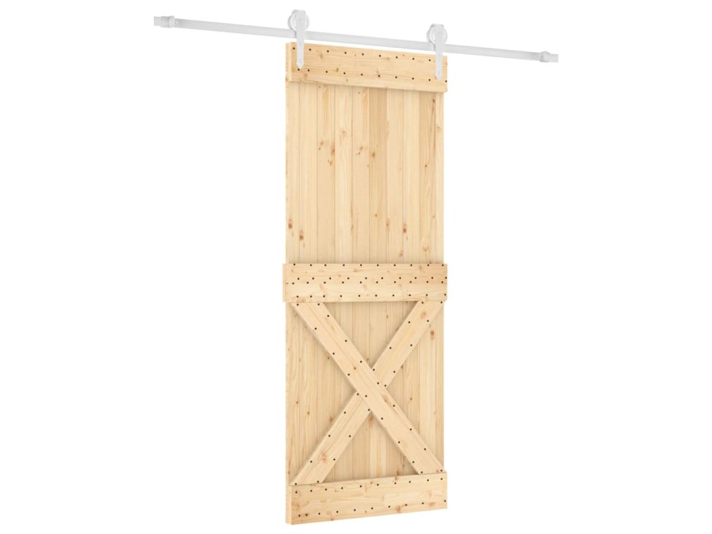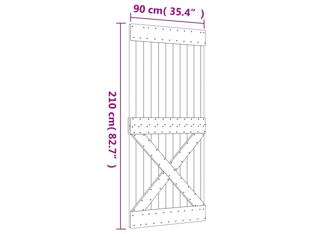Posuvné dveře s kováním 90 x 210 cm masivní borové dřevo 3203252