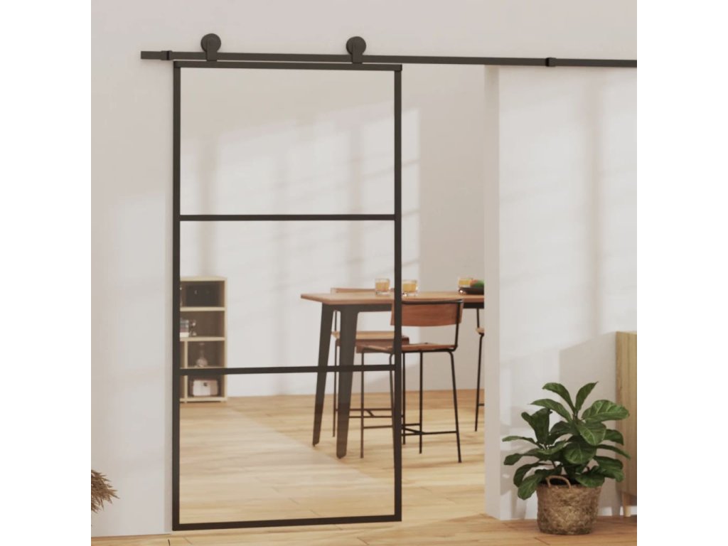 Posuvné dveře s kováním ESG sklo a hliník 102 x 205 cm 3081943