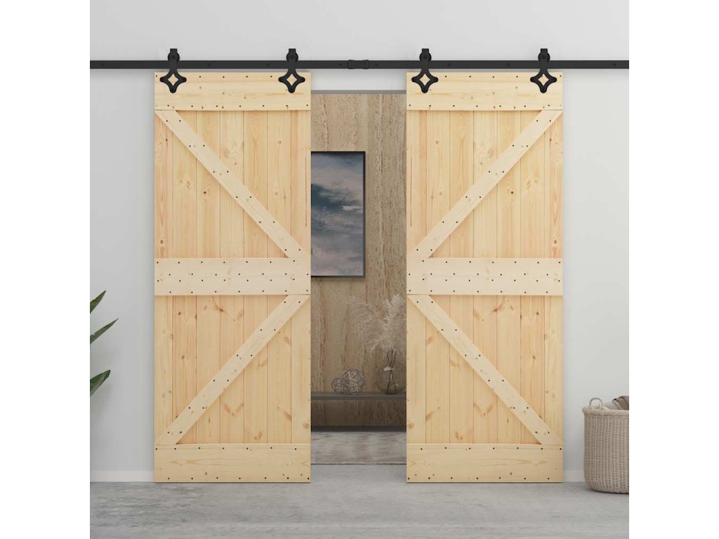 Dveře jsou vyrobené z masivního borového dřeva, jsou proto mimořádně stabilní a mají dlouhou životnost. Dřevo s přírodním povrchem můžete také přemalovat nebo přetřít podle svého vkusu. Balení obsahuje také kování pro snadnou instalaci posuvných dveří. Kování z práškově lakované oceli přispívá k celkové robustnosti dveří.