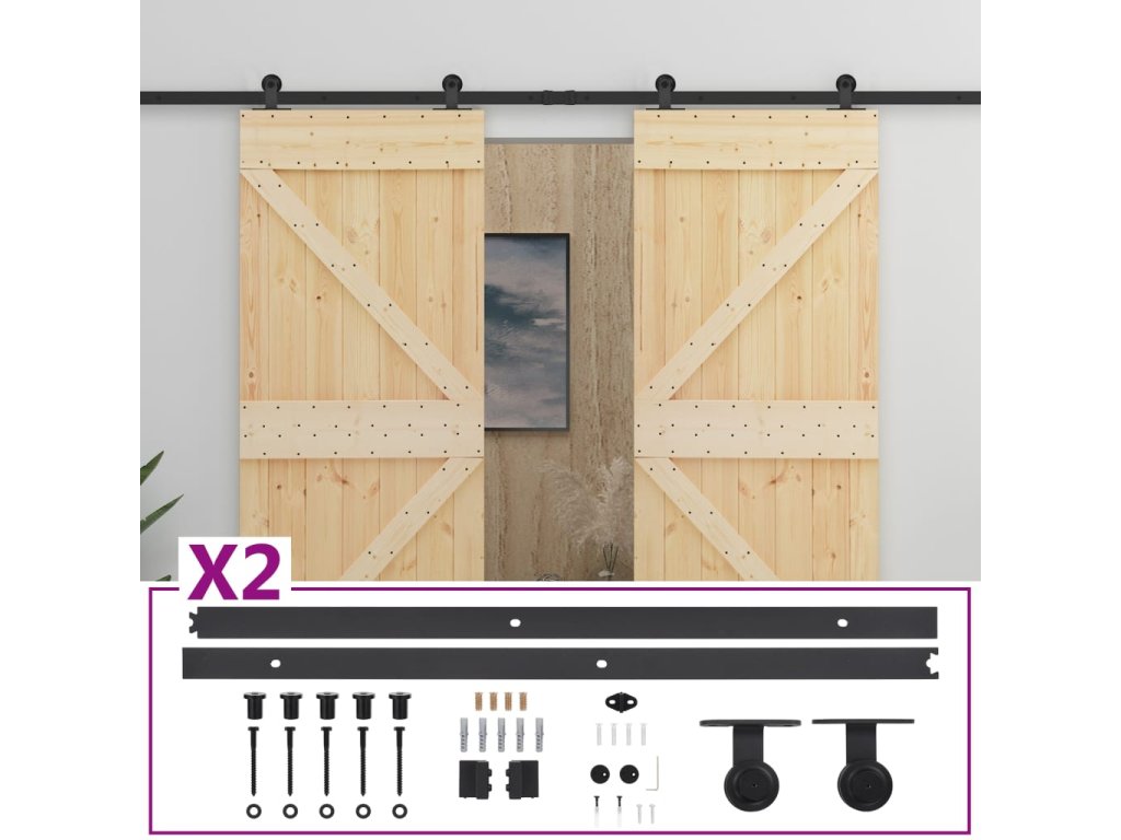Posuvné dveře se setem kování 80 x 210 cm masivní borové dřevo 3057585