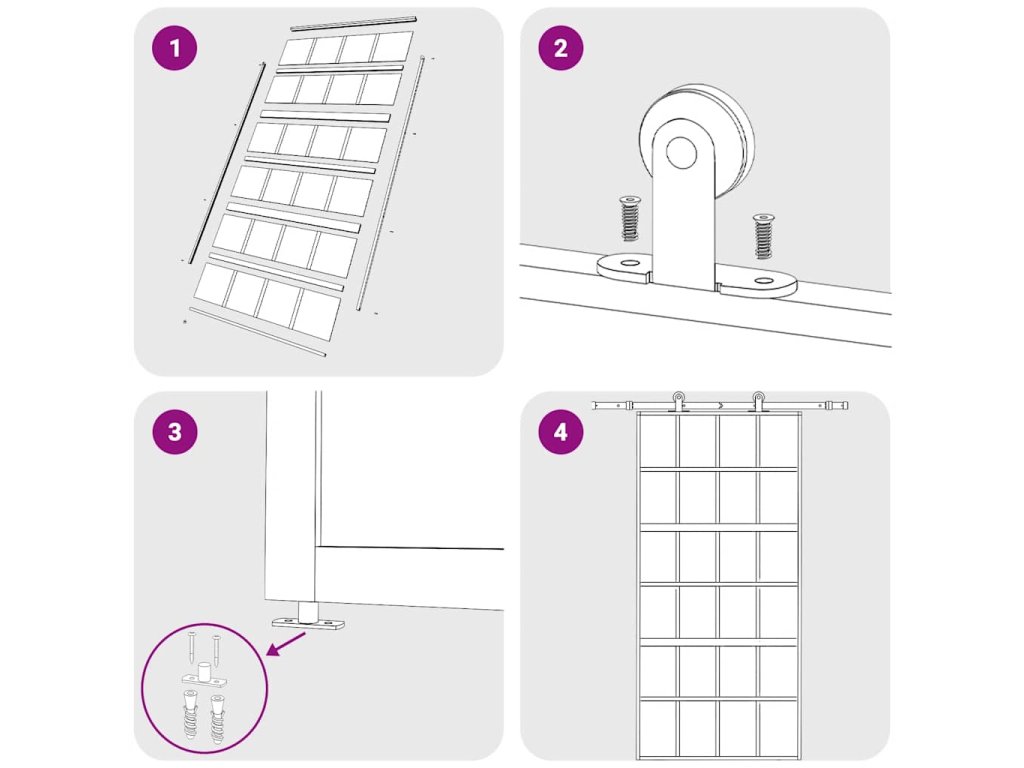 - Způsob instalace je vysvětlen v našem instalačním manuálu ke dveřím a sadám příslušenství.