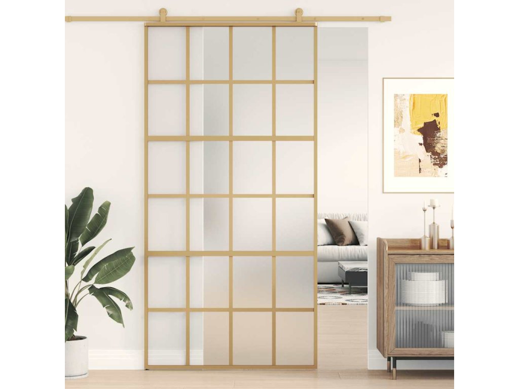 Posuvné dveře zlaté 102,5 x 205 cm mléčné ESG sklo a hliník 155177