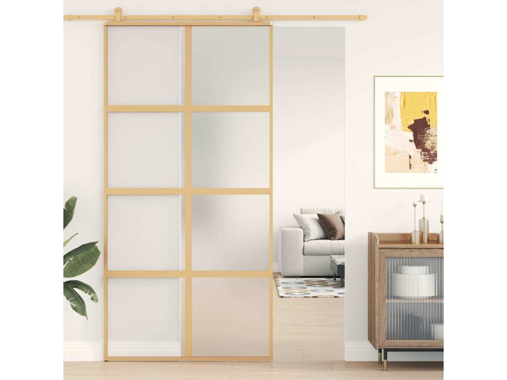 Posuvné dveře zlaté 102,5 x 205 cm mléčné ESG sklo a hliník 155189
