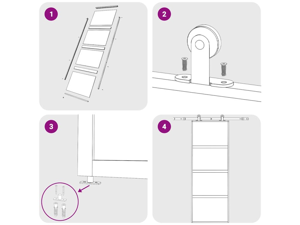 - Způsob instalace je vysvětlen v našem instalačním manuálu ke dveřím a sadám příslušenství.