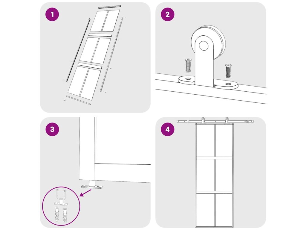 - Způsob instalace je vysvětlen v našem instalačním manuálu ke dveřím a sadám příslušenství.