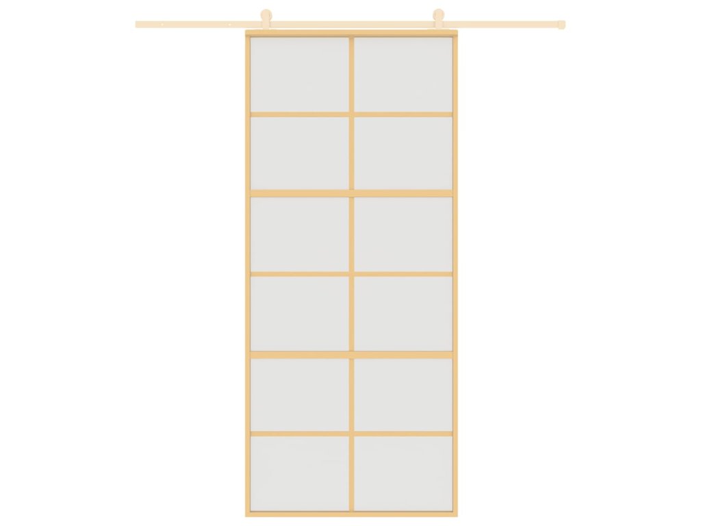 Posuvné dveře zlaté 90 x 205 cm mléčné ESG sklo a hliník 155170