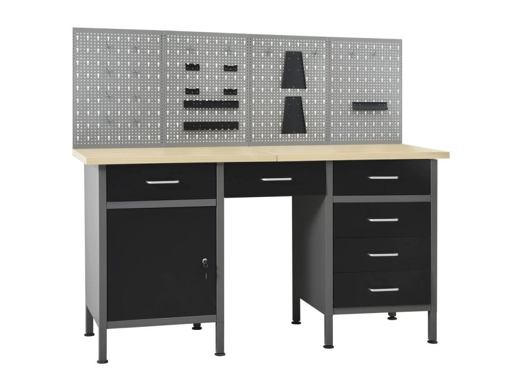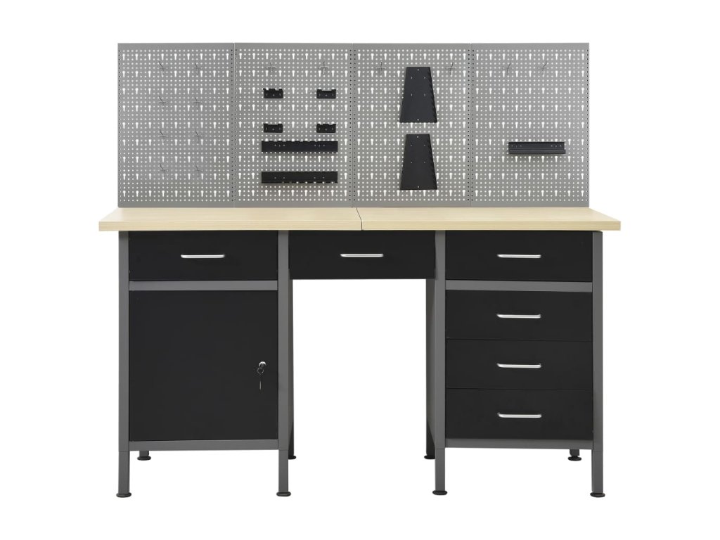 Tato dílenská sada 1 pracovního stolu se 4 nástěnnými panely je praktické úložné řešení pro vaši dílnu a garáž.