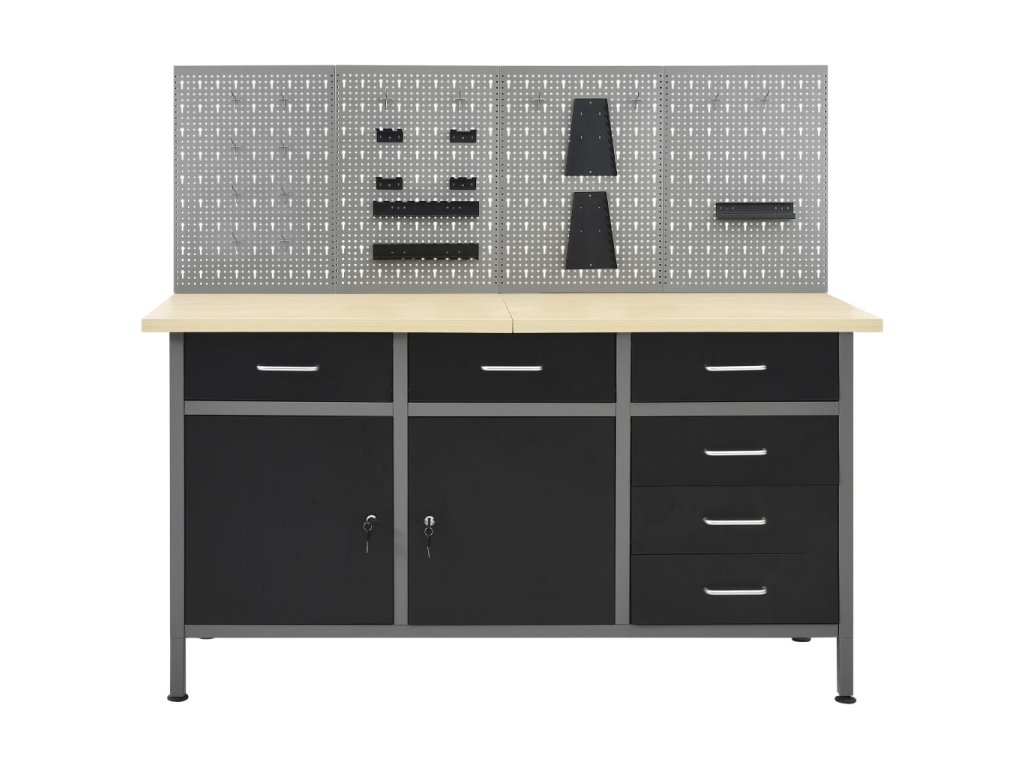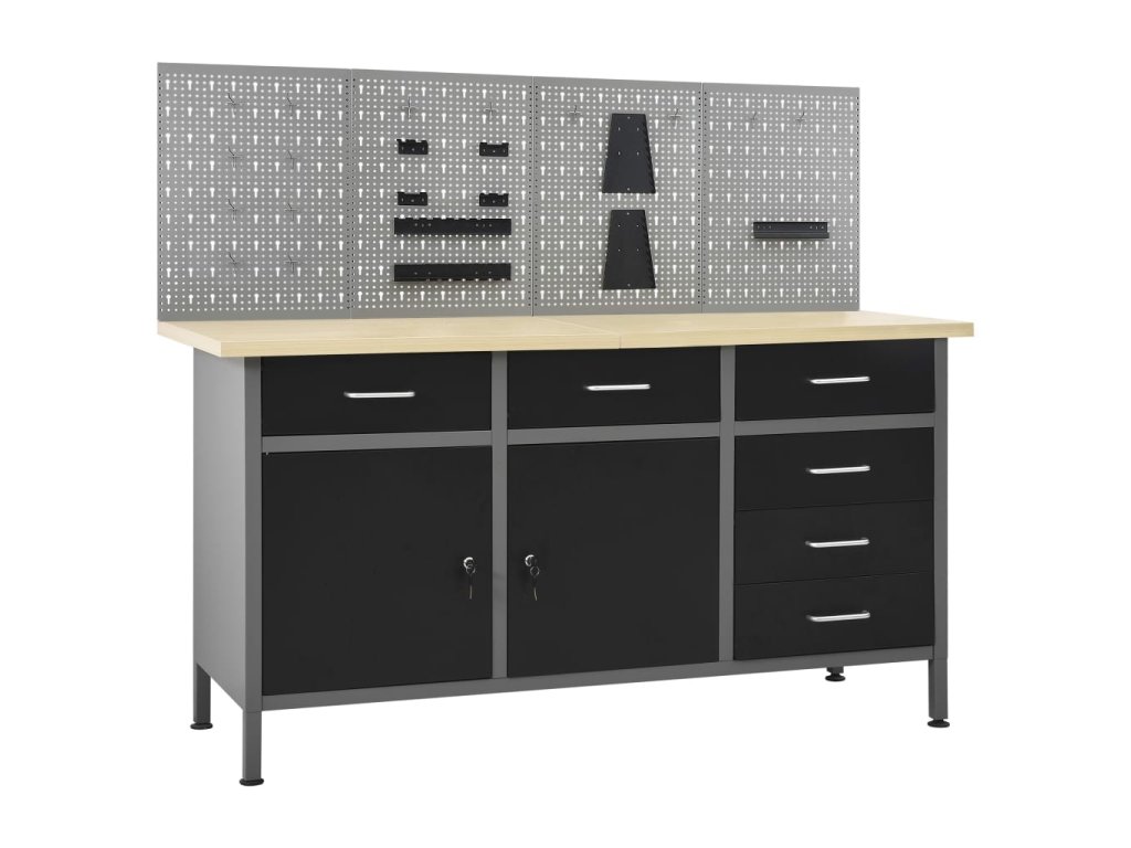 Tato dílenská sada 1 pracovního stolu se 4 nástěnnými panely je praktické úložné řešení pro vaši dílnu a garáž.