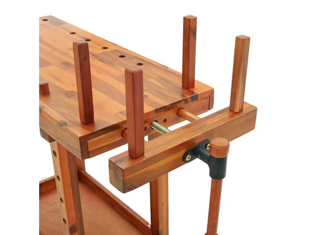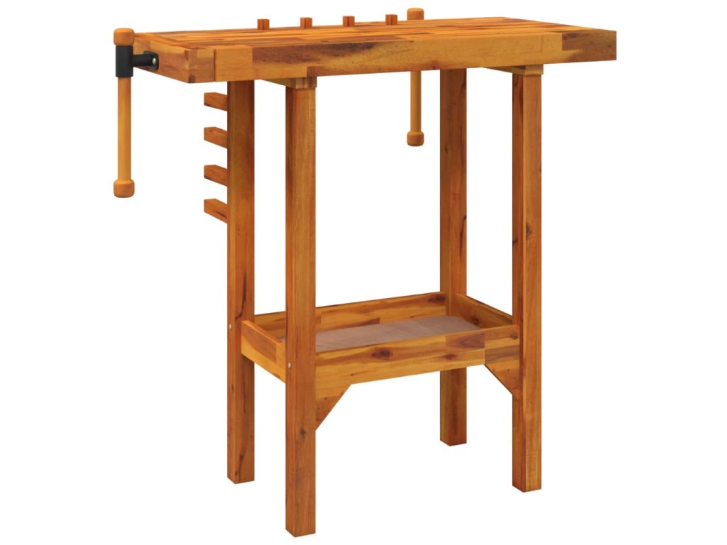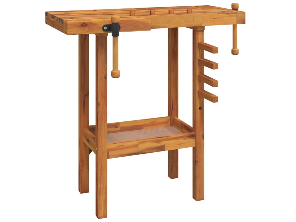 Pracovní stůl se svěráky 92 x 48 x 83 cm masivní akáciové dřevo 153319