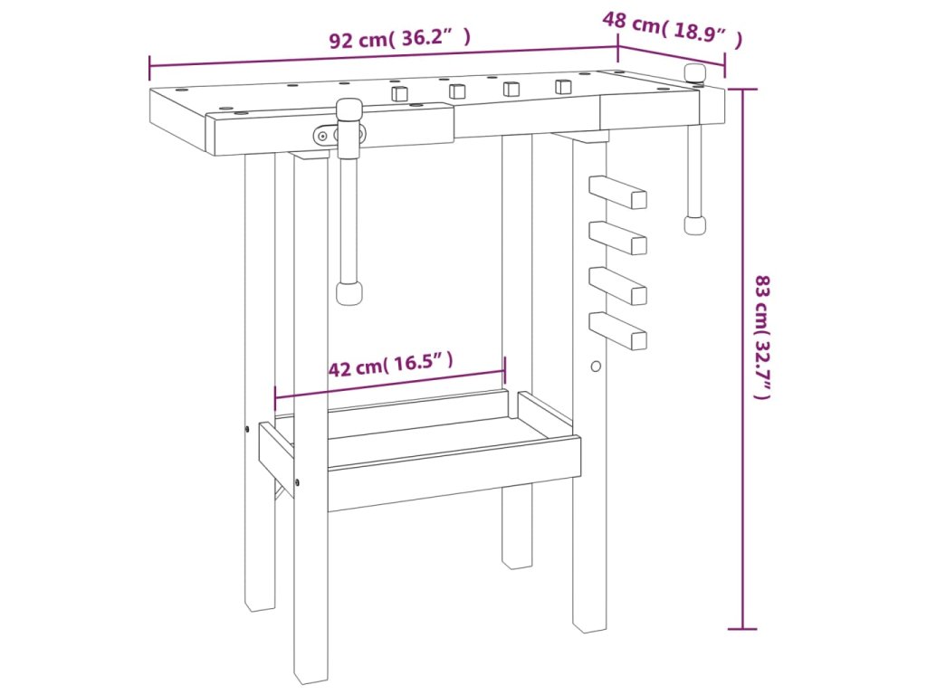 Tento dřevěný pracovní stůl je vzhledem ke svému pevnému a stabilnímu rámu ideální pro jakoukoli práci v garáži, dílně nebo kůlně.