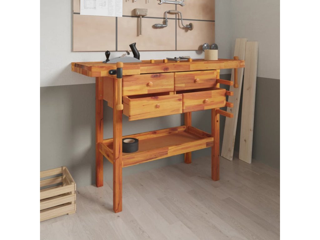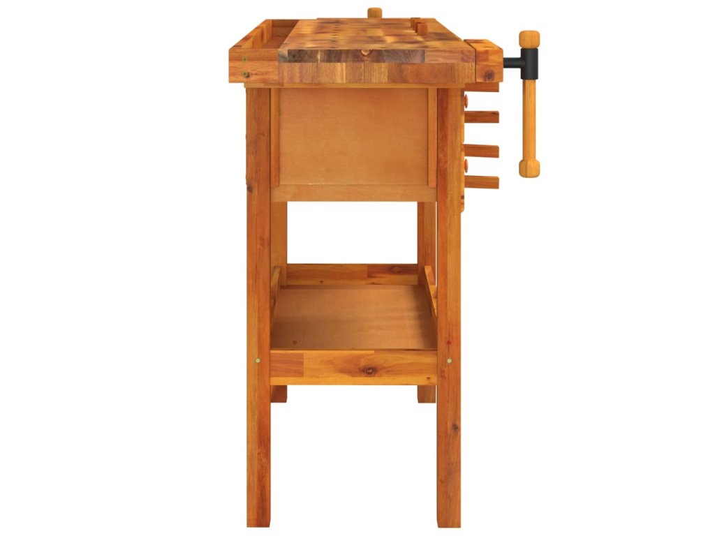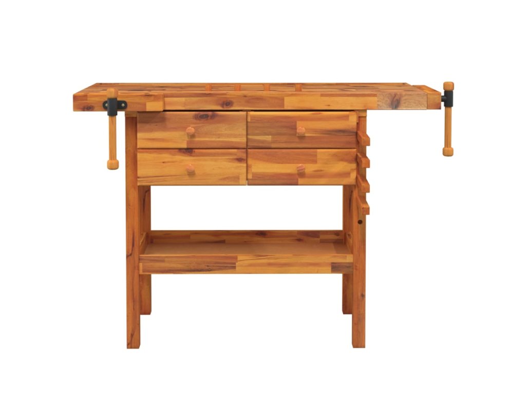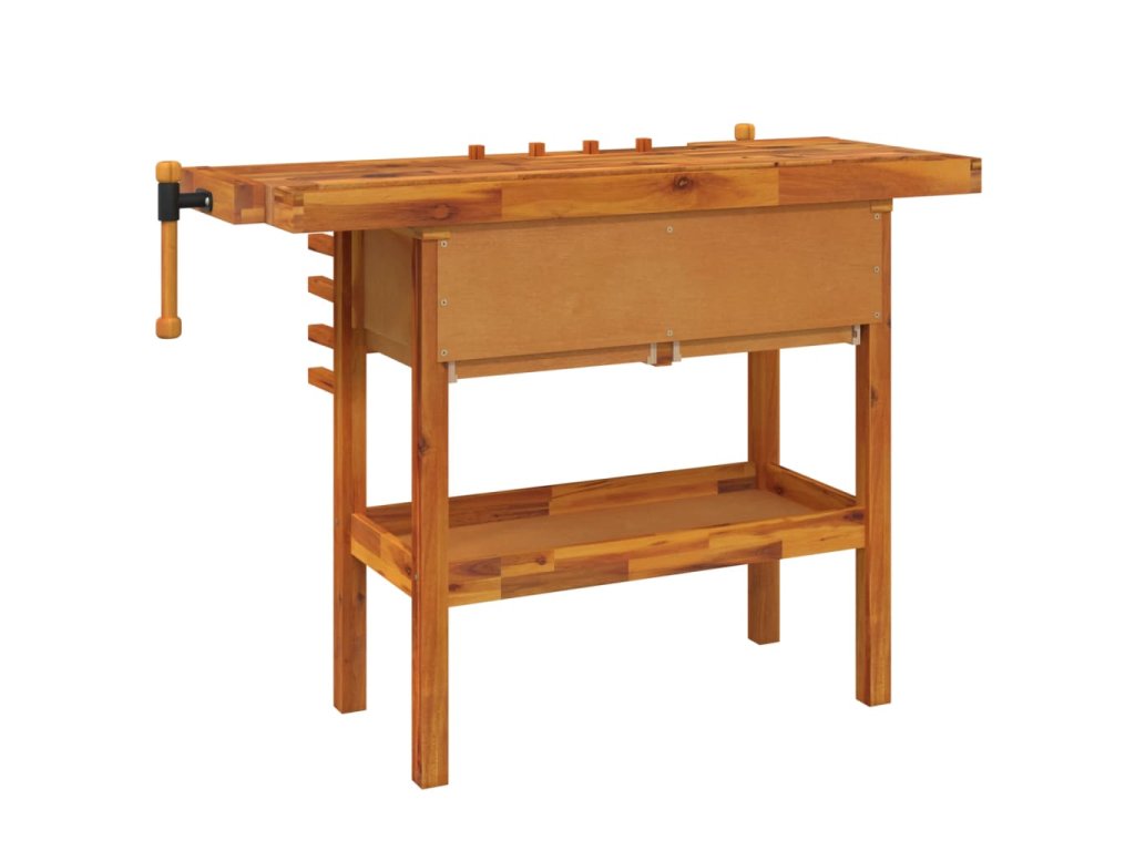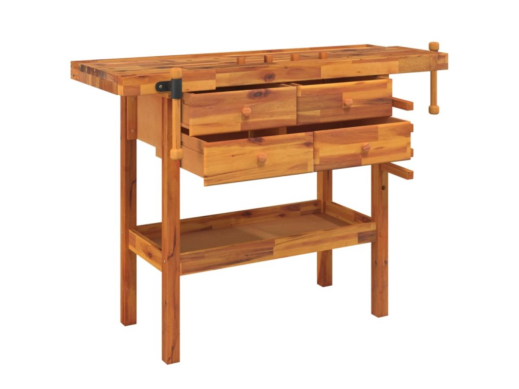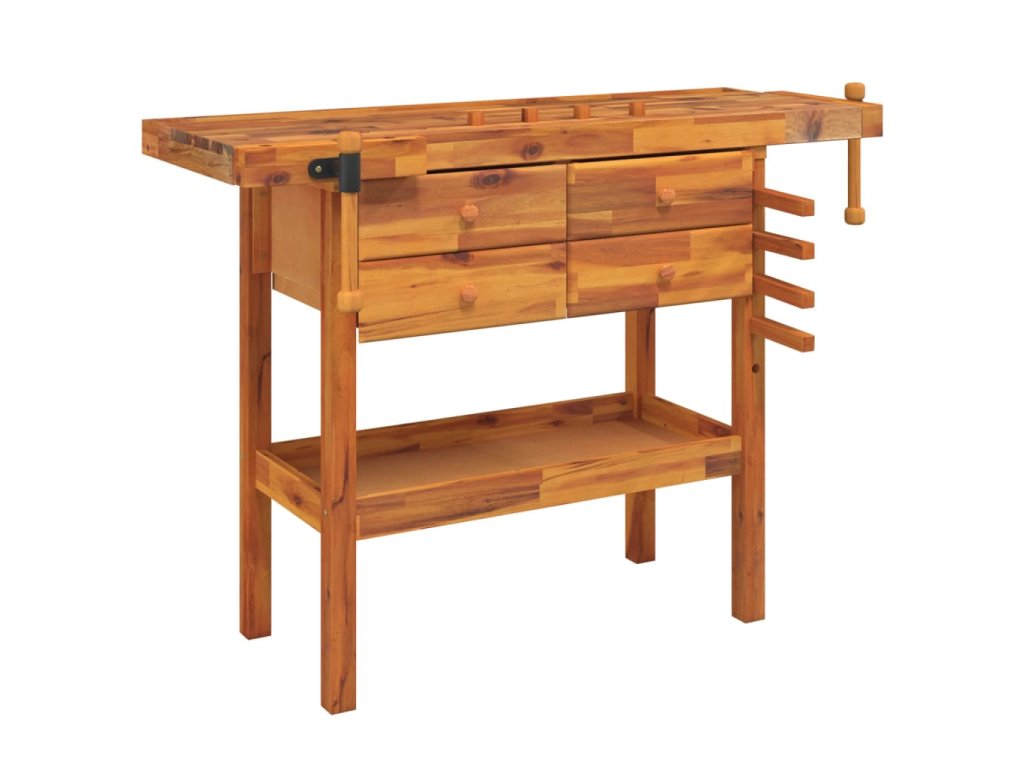 Pracovní stůl se zásuvkami a svěráky 124x52x83cm masivní akácie 153322