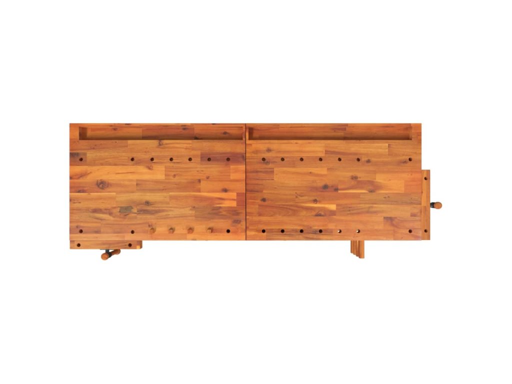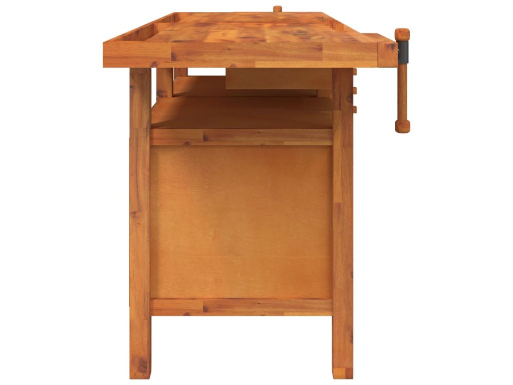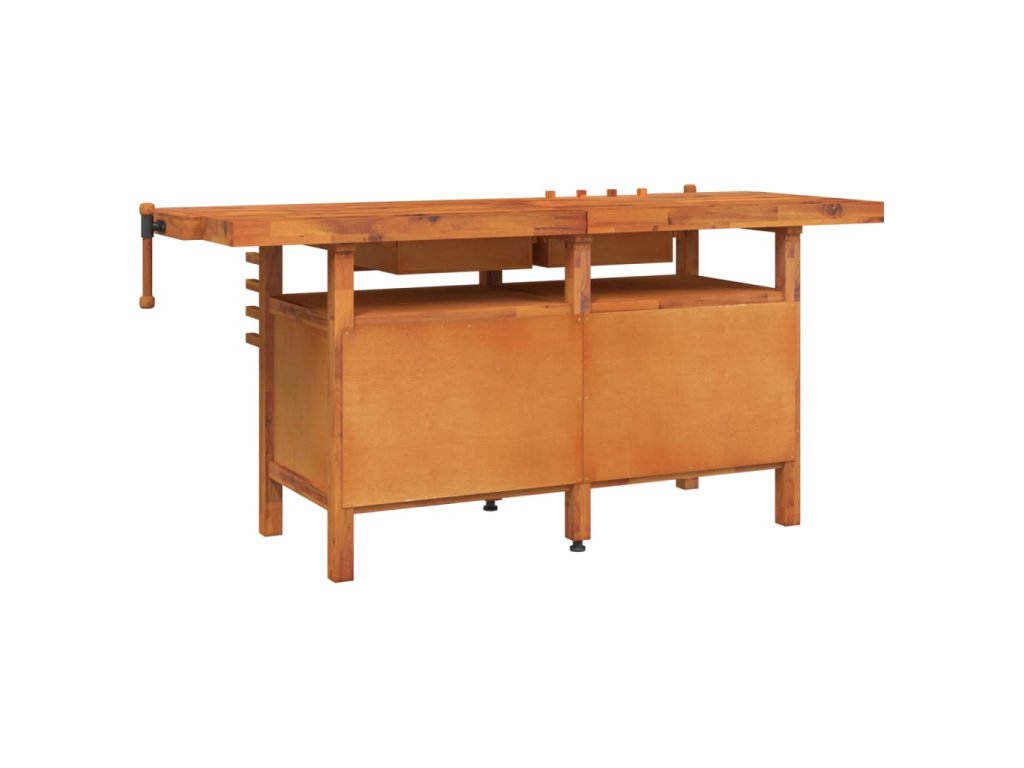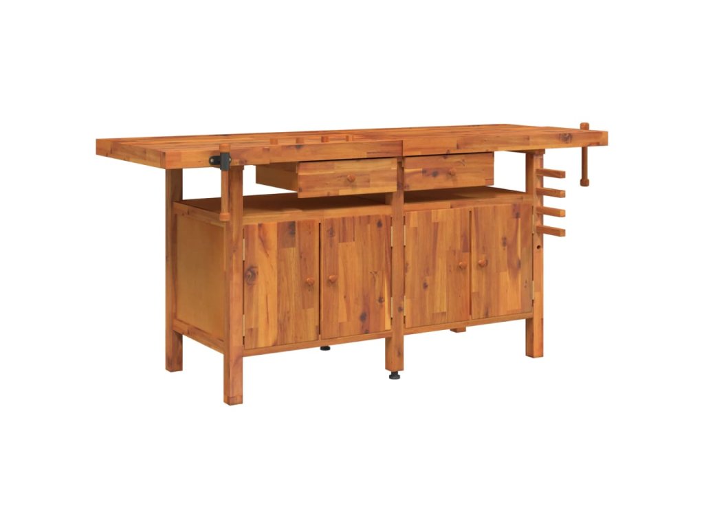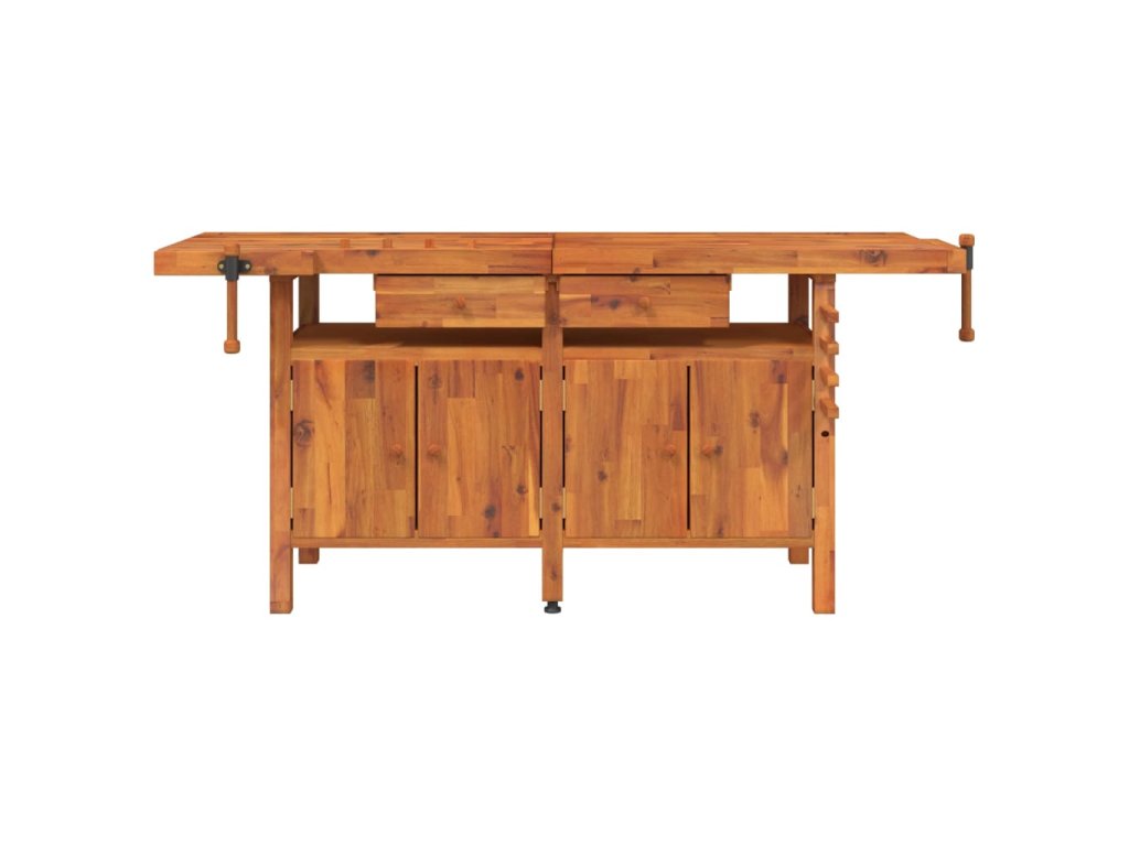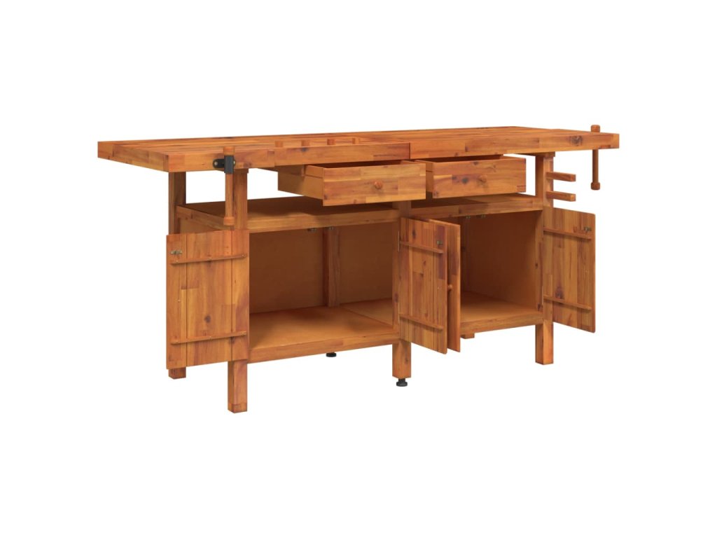 Pracovní stůl se zásuvkami a svěráky 192x62x83cm masivní akácie 153326