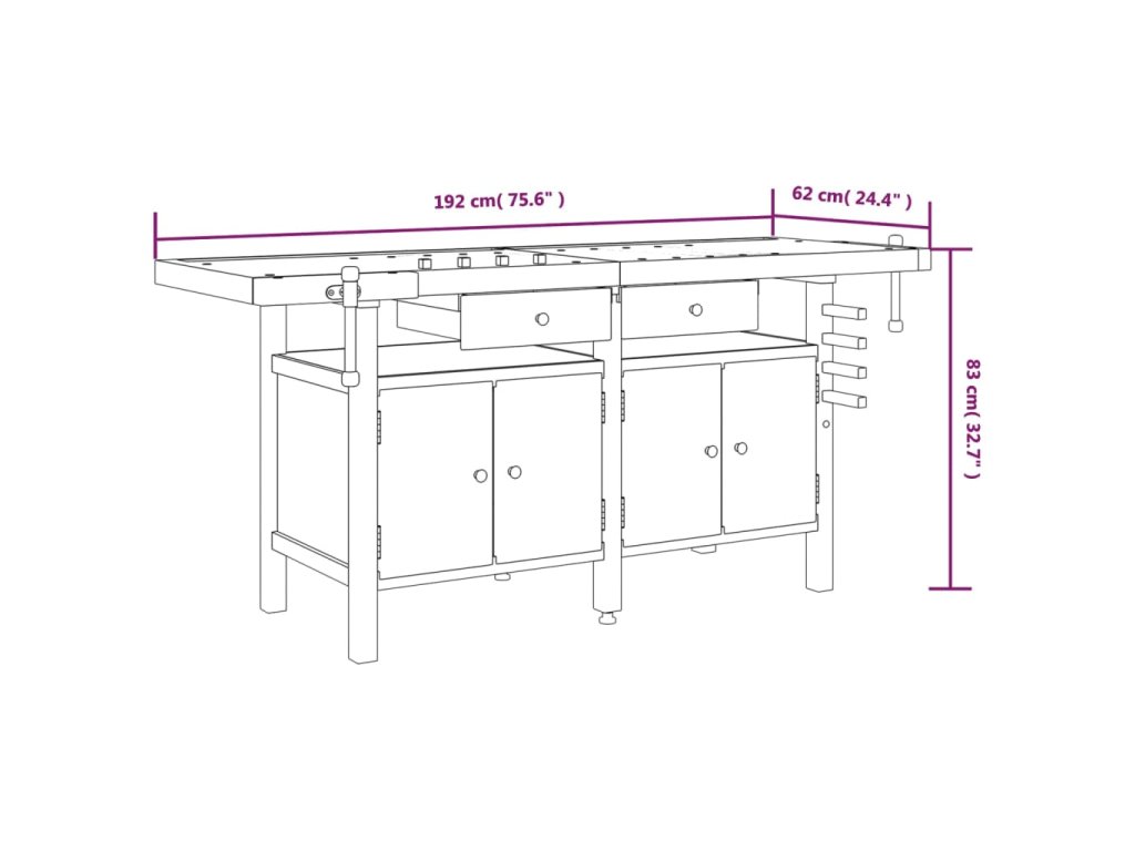 - Dostatek úložného prostoru: Tato pracovní stanice se 2 úložnými zásuvkami a 1 velkou přihrádkou s dvířky poskytuje dostatek úložného prostoru, abyste měli nářadí přehledně uspořádané a po ruce.