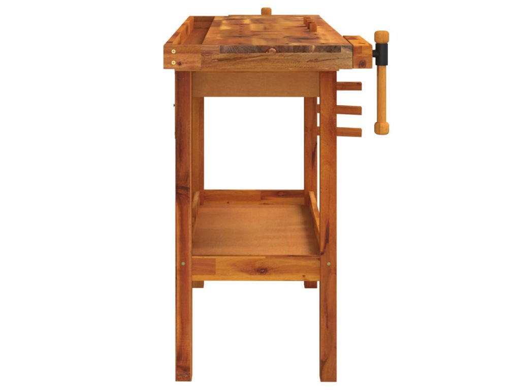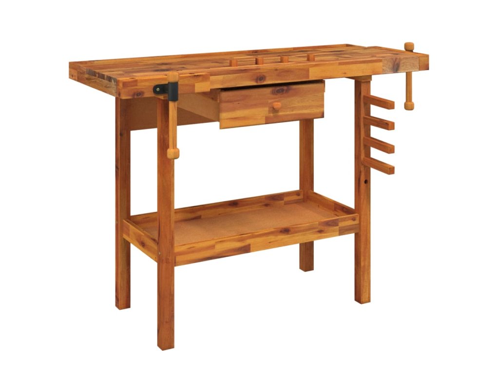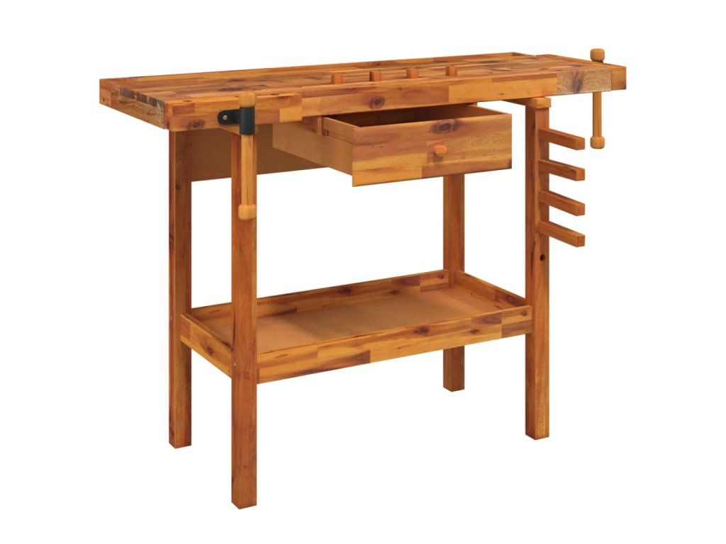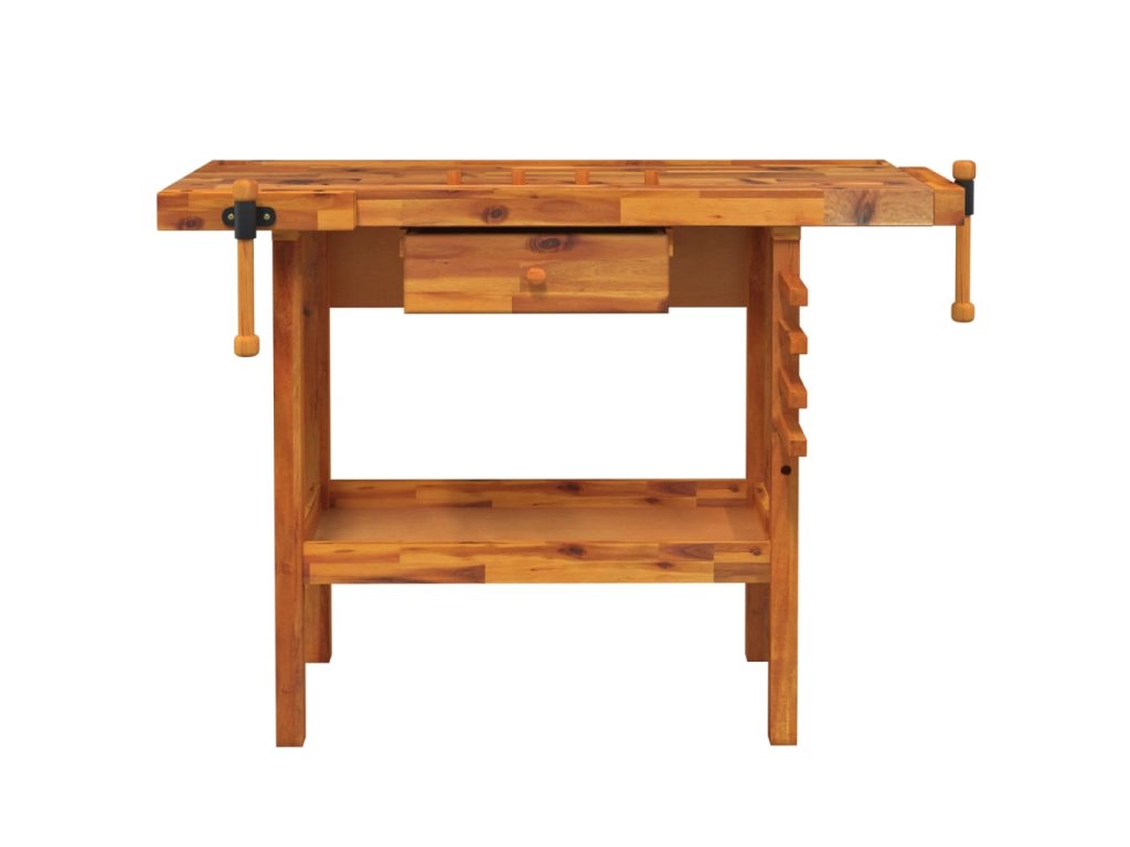 Pracovní stůl se zásuvkou a svěráky 124 x 52 x 83 cm masivní akácie 153320