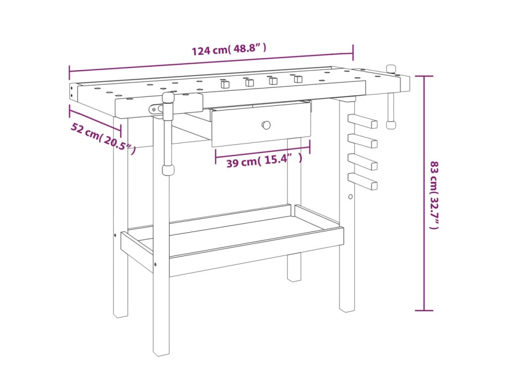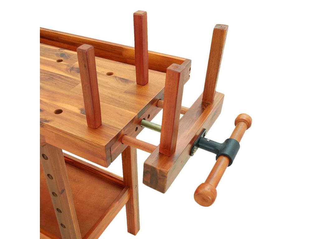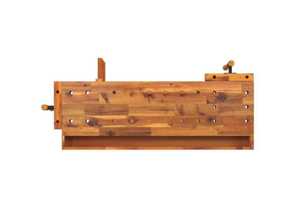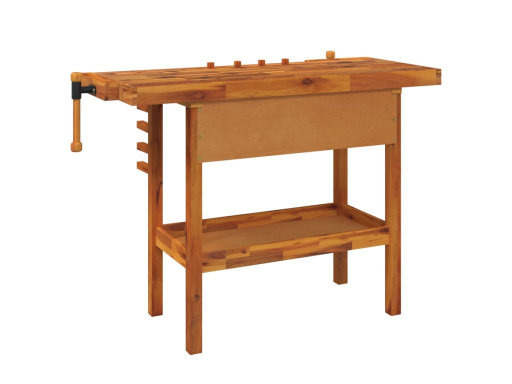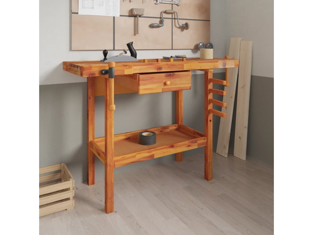 Pracovní stůl se zásuvkou a svěráky 124 x 52 x 83 cm masivní akácie 153320