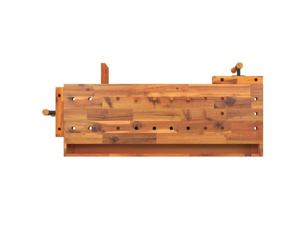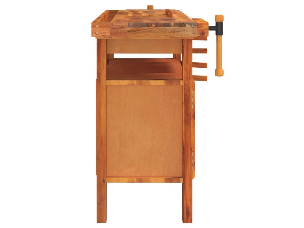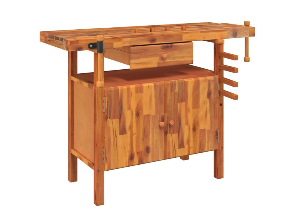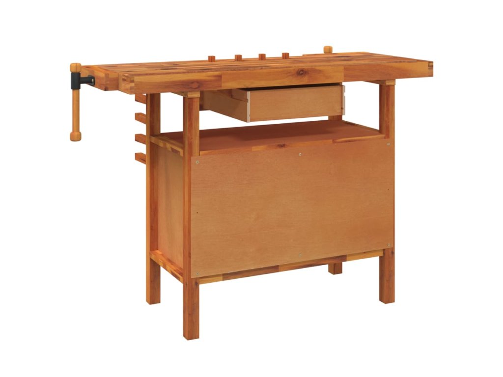 Pracovní stůl se zásuvkou a svěráky 124 x 52 x 83 cm masivní akácie 153321