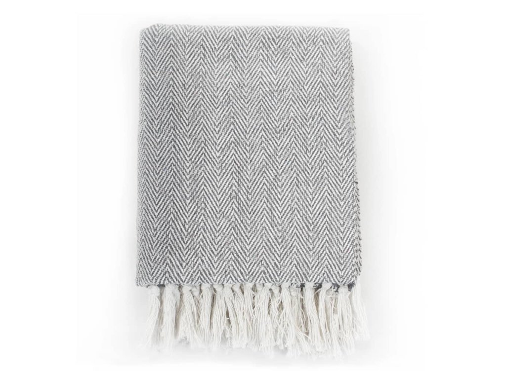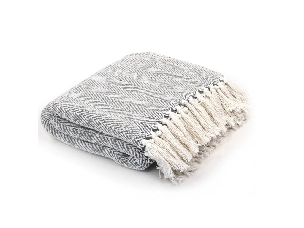 Přehoz bavlněný vzor rybí kosti 125 x 150 cm šedý 245318
