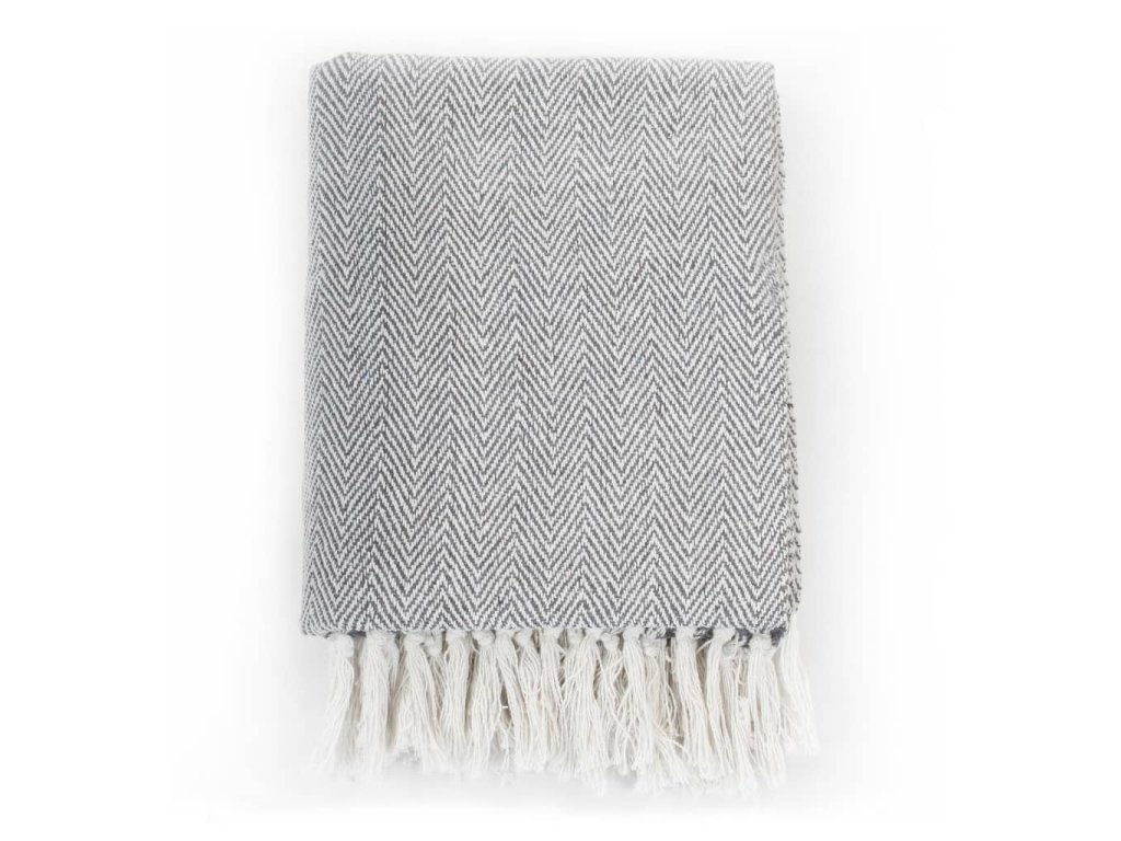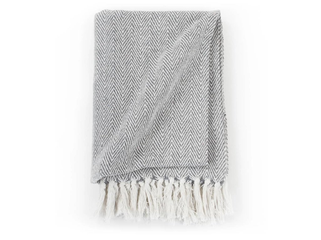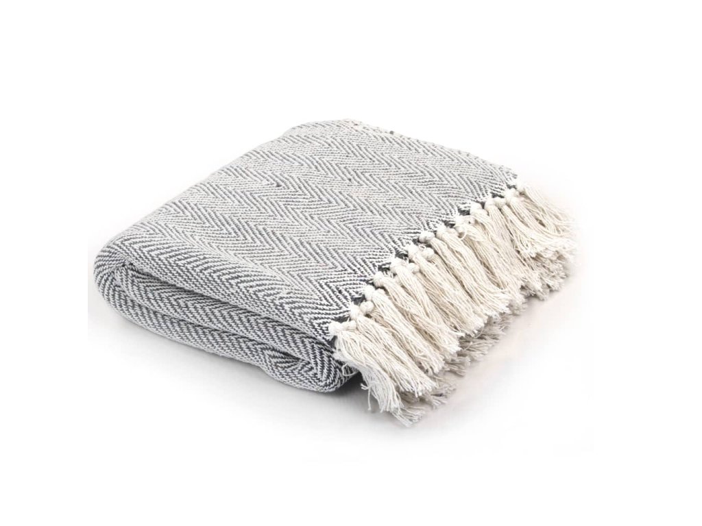Přehoz bavlněný vzor rybí kosti 160 x 210 cm šedý 245319