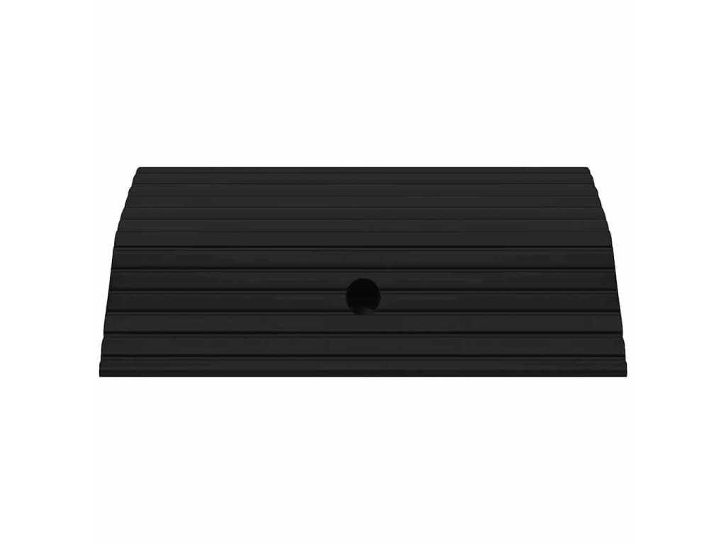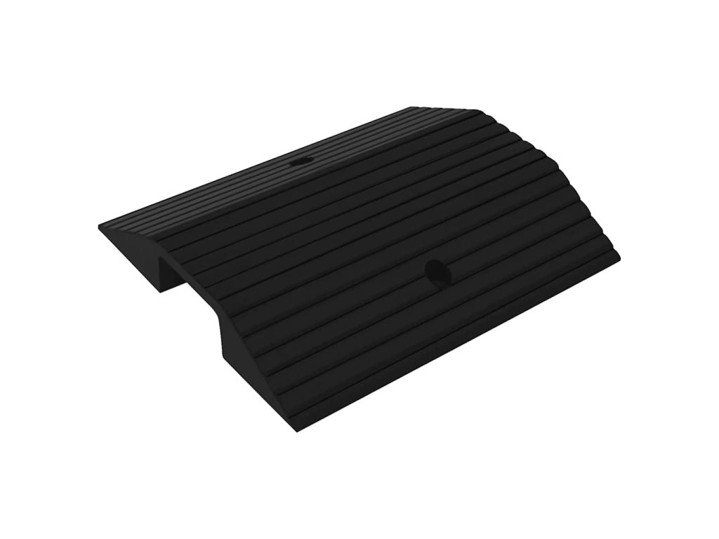 Přejezdová rampa je vyrobena z pevné pryže, je lehká a dostatečně odolná pro dlouhodobé používání. Drsný povrch má protiskluzovou strukturu, která pomáhá zabránit uklouznutí při nájezdu.