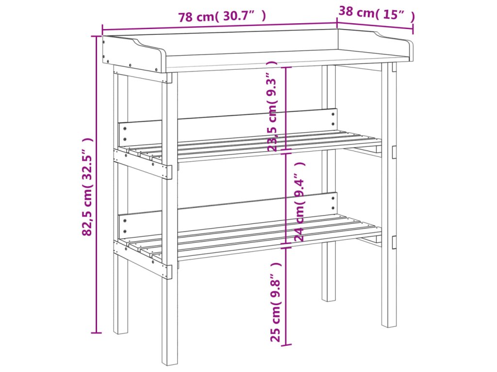 Přesazovací stůl s policemi hnědý 78x38x82,5 cm masivní jedle 156353