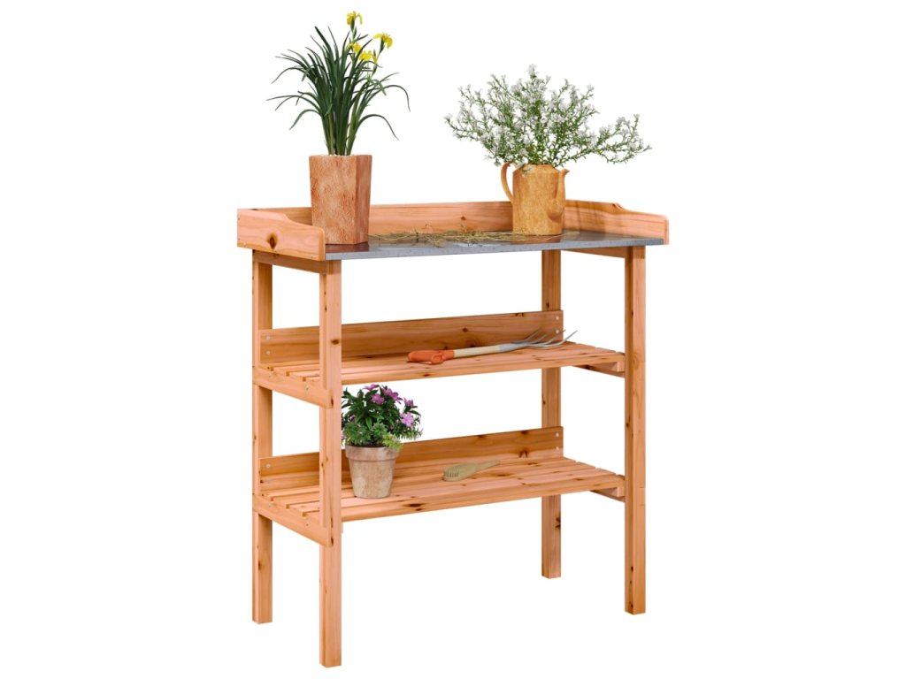 - Dostatek úložného prostoru: Dřevěný stojan na rostliny se 2 otevřenými policemi poskytuje dostatek prostoru pro související předměty, jako je drobné zahradnické nářadí, zemina, hnojiva apod.