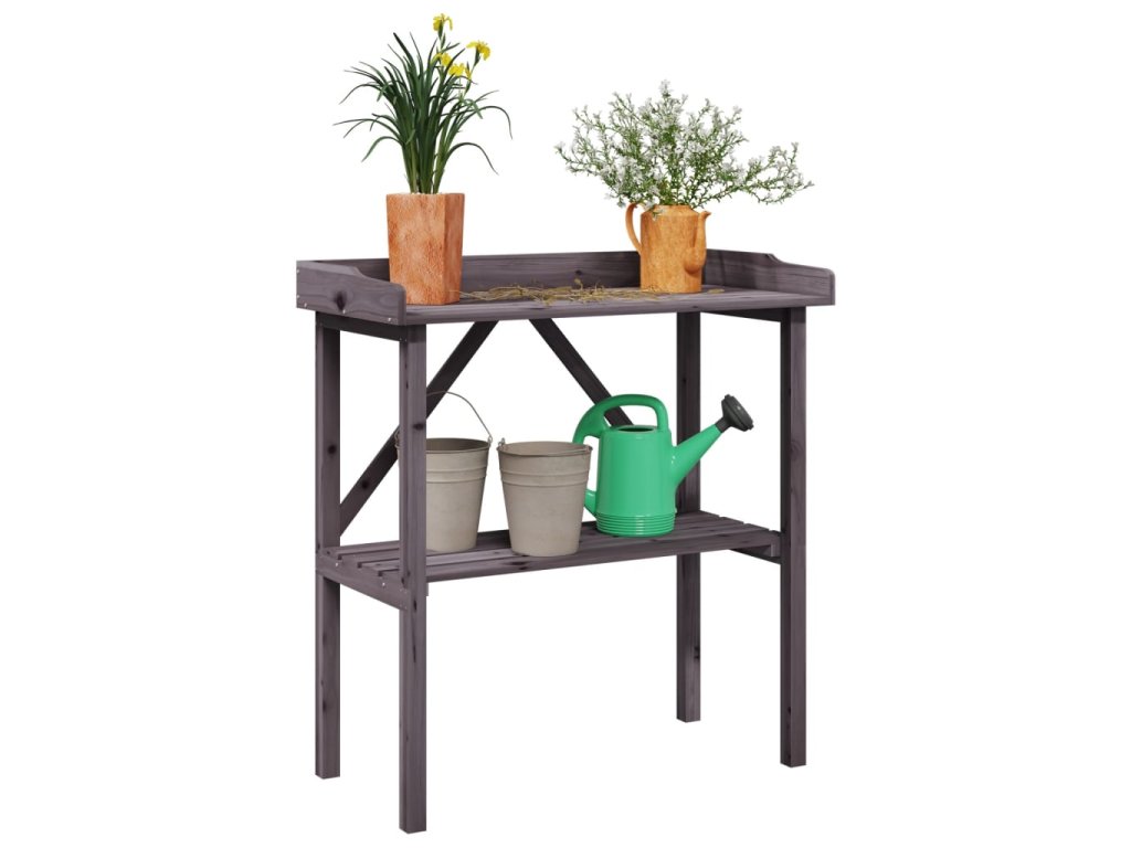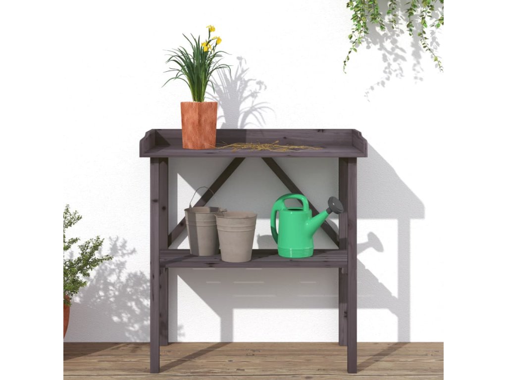 Přesazovací stůl s policí šedý 78 x 38 x 82,5 cm masivní jedle 156351