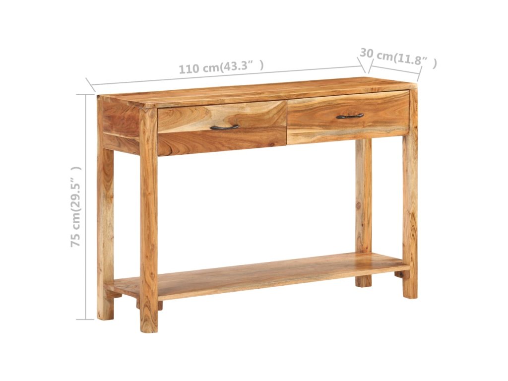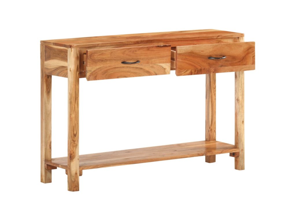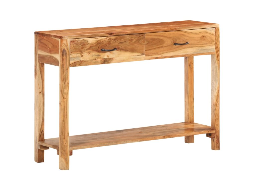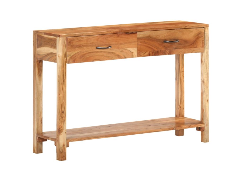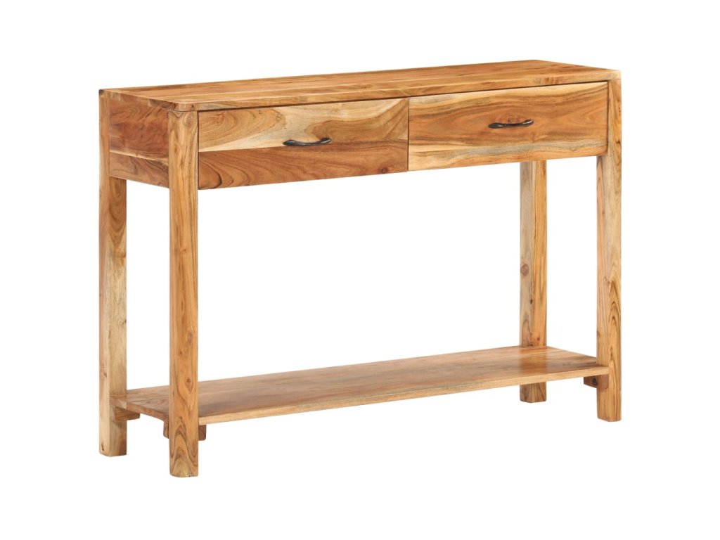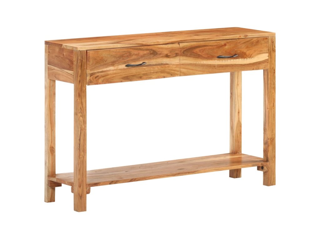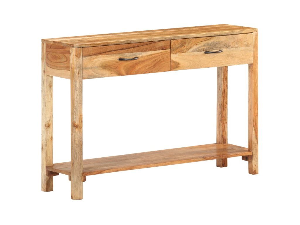 Odkládací skříňka je ručně vyrobená z masivního akáciového dřeva s přírodní povrchovou úpravou, takže je stabilní a dlouho vám vydrží. Zručné zpracování a překrásná kresba dřeva propůjčují každému kusu nábytku jedinečný charakter, takže nenajdete dva stejné. Příborník má dvě zásuvky a spodní poličku, kde si můžete ukládat nejrůznější věci. Zároveň vám poslouží i jako konzolový stolek či skříňka pod zrcadlo apod.