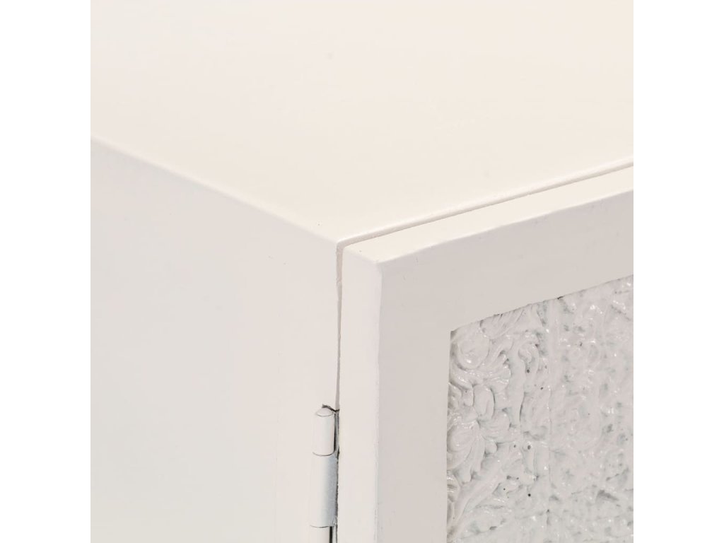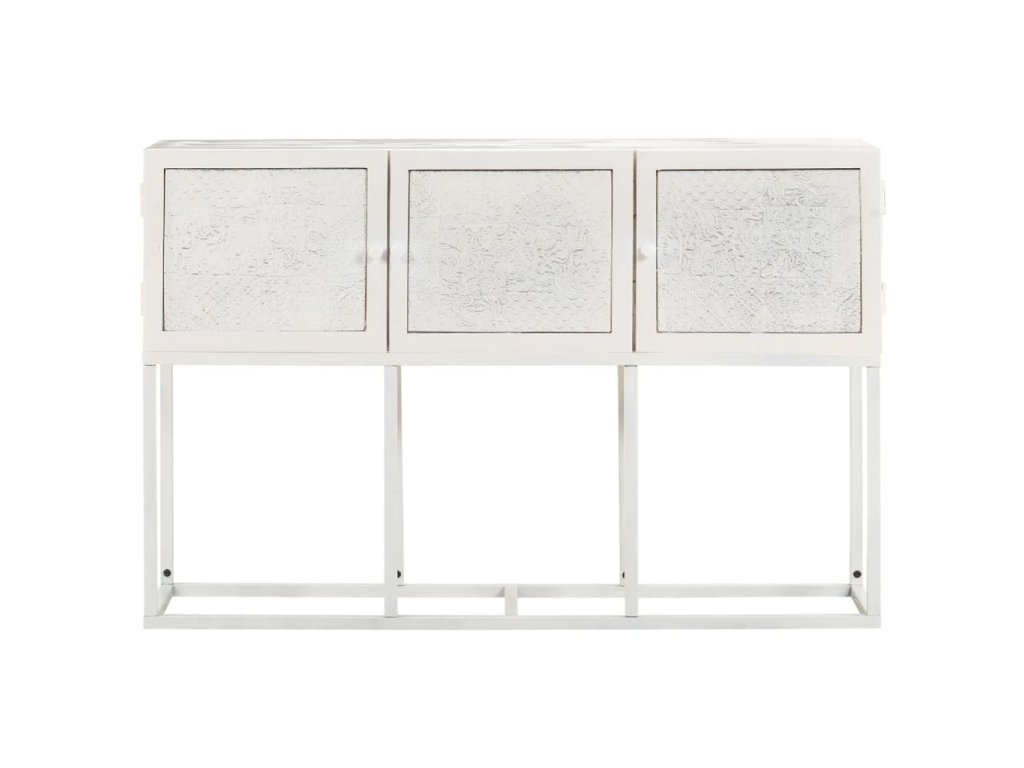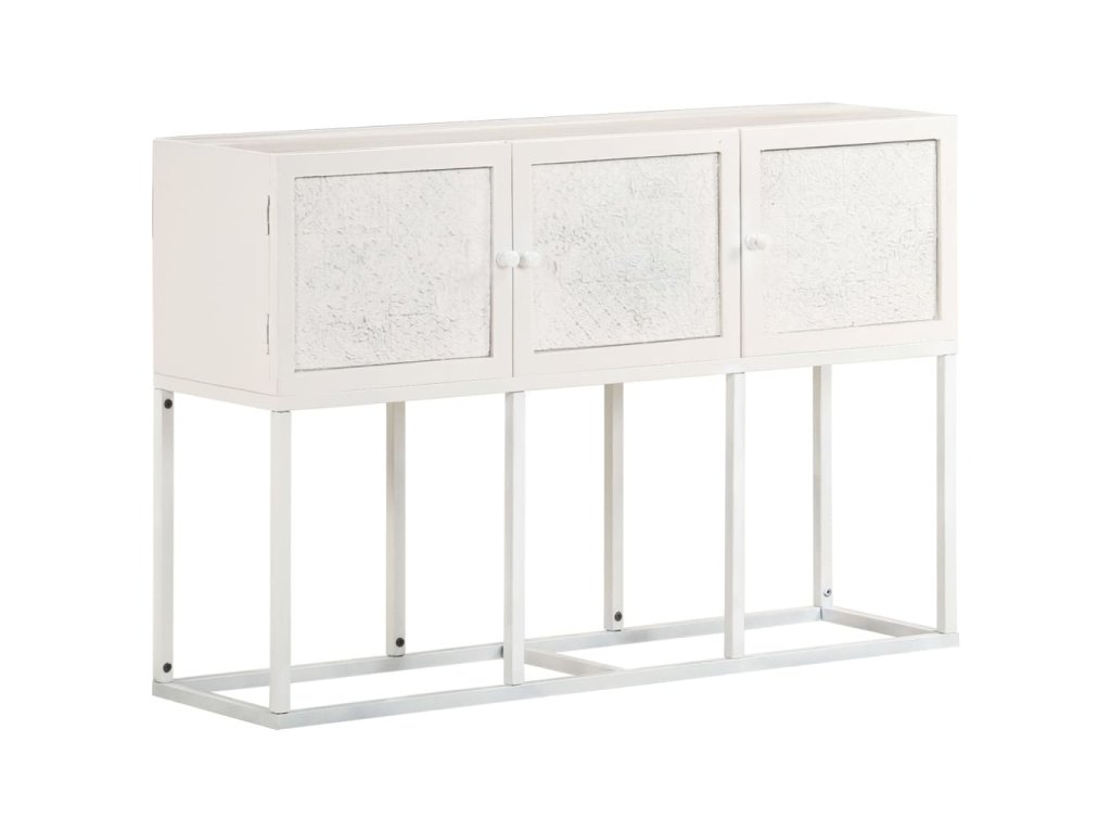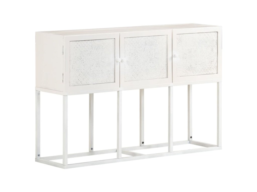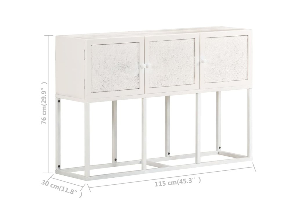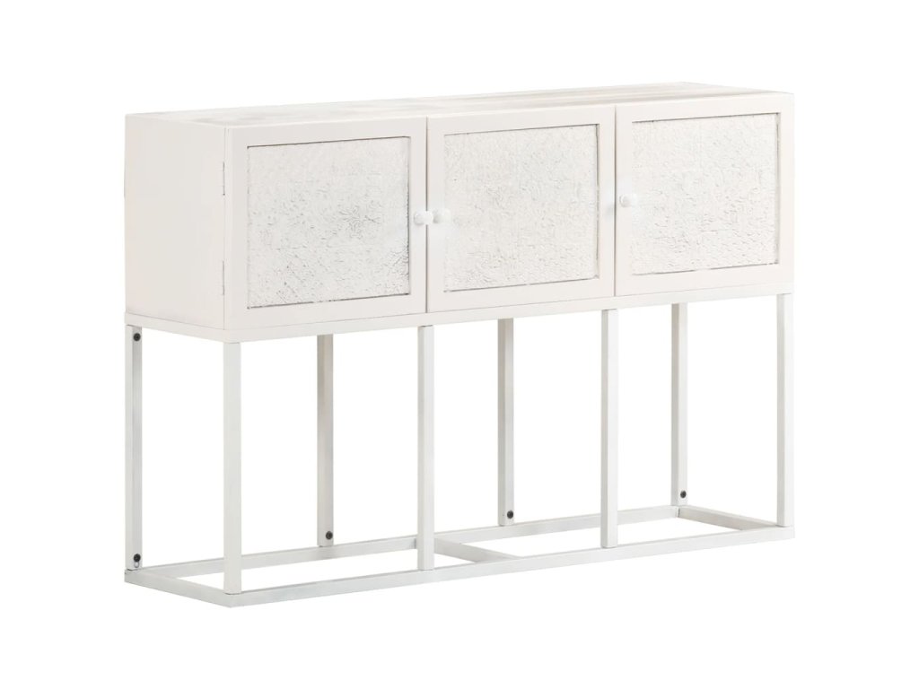 Odkládací skříňka je vyrobená z masivního mangovníku. Toto tropické tvrdé dřevo dokáže unést značnou váhu a skvěle odolává zubu času, takže je velice stabilní a dlouho vám vydrží. Práškově lakovaný železný rám přispívá ke stabilitě skříňky. Ve skříňce jsou přihrádky se 3 dvířky, za kterými najdete spoustu úložného prostoru. Pevná horní deska je perfektní k vystavení nejrůznějších dekorací, jako jsou zarámované fotografie, pokojové rostliny, vázy apod.