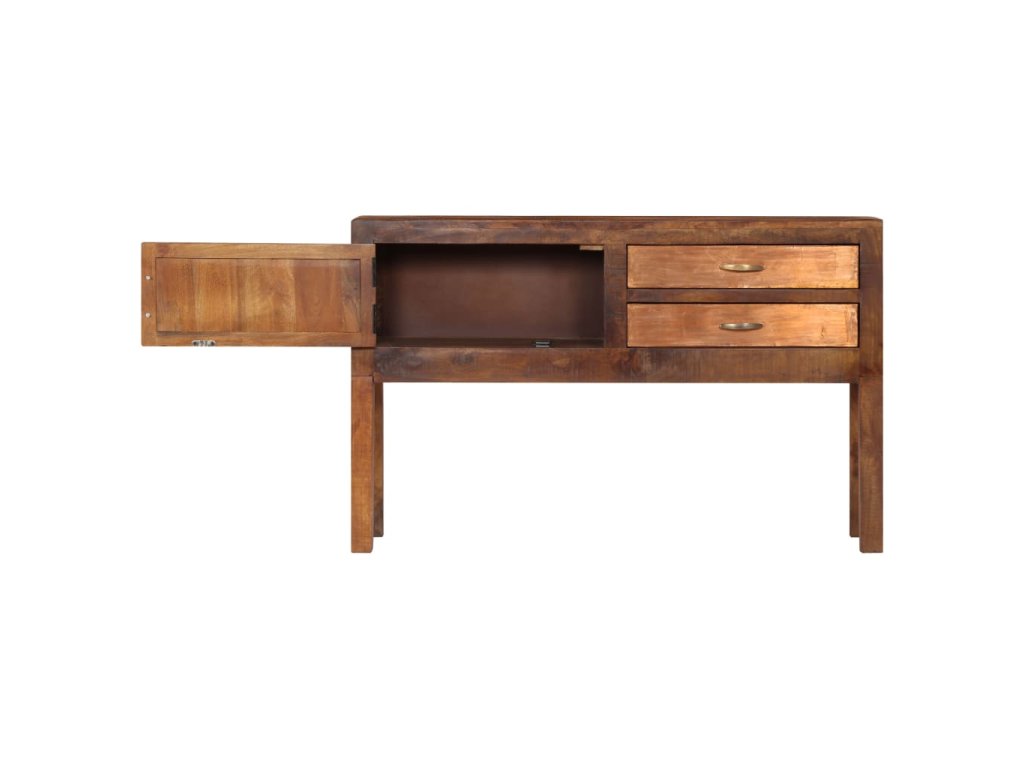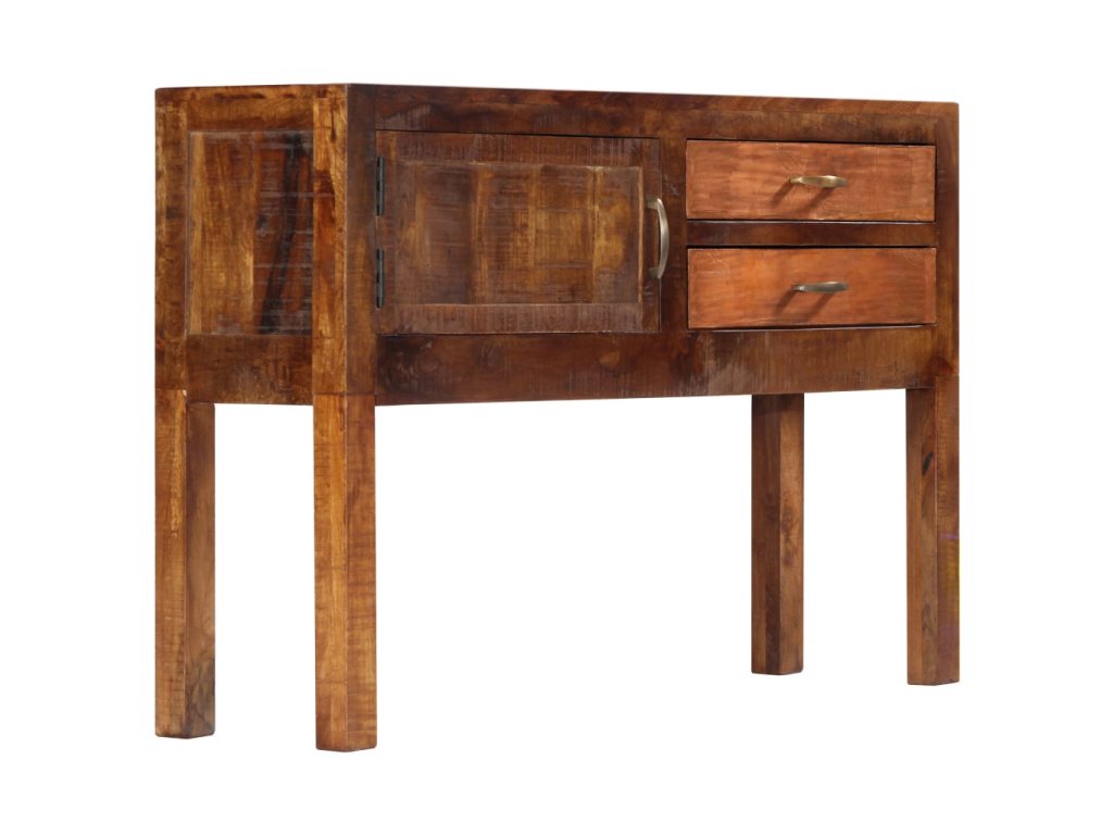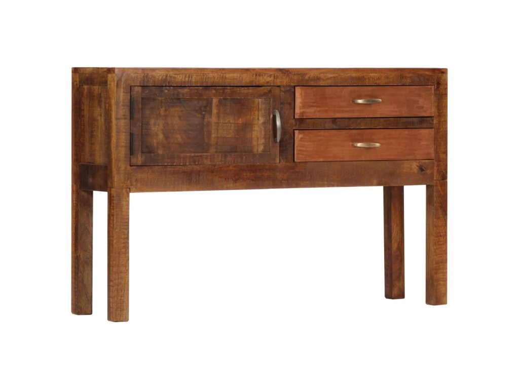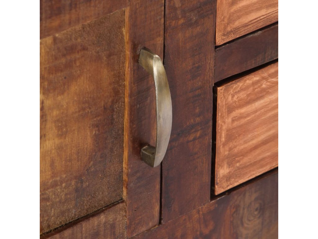 Vintage skříňka je vyrobená z masivního mangovníku, což je tvrdé dřevo s hustou texturou. Hrubé mangovníkové dřevo je nejen schopné unést značnou váhu, ale zároveň také výborně odolává opotřebení a působení času. Příborník je proto nesmírně stabilní, trvanlivý a příjemný na pohled. Prvotřídní řemeslné zpracování spolu s elegantní kresbou dřeva činí každý kus nábytku zcela jedinečným a lehce odlišným od ostatních. Dřevěná skříň navíc disponuje 2 zásuvkami a 1 zavírací skříňkou, které vám poskytnou spoustu úložného prostoru na oblečení, knížky a všelijaké další věci.