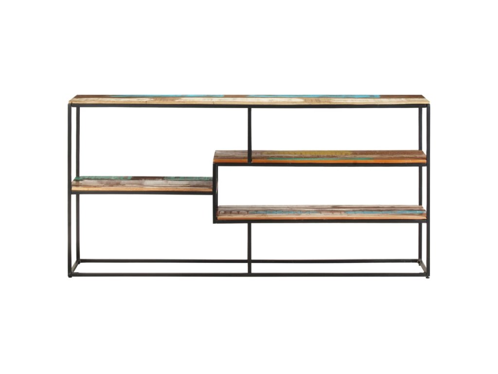 Příborník je vyrobený z masivního recyklovaného dřeva. Takové dřevo může obsahovat různé druhy dřeva, jako je teak, tvrdé dřevo, tropické dřevo, mangovníkové dřevo atd. To znamená, že si recyklované dřevo zachovává vlastnosti těchto různých typů dřeva a každý kus nábytku je jedinečný a odlišný od všech ostatních. Police je dostatečně bytelná a snadno se čistí. Ocelový rám s práškovým nástřikem přispívá k industriálnímu kouzlu tohoto nábytku. Na polici je několik otevřených přihrádek, kam si můžete uložit nebo vystavit vaše hrnkové květiny, koše s občerstvením, knihy, trofeje atd.