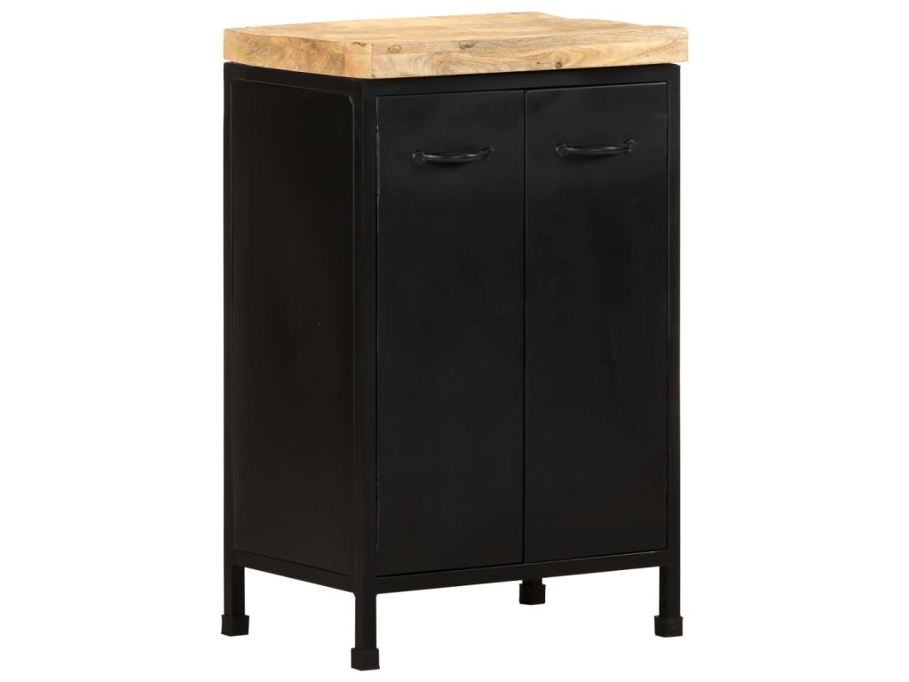 Odkládací skříňka je vyrobená z hrubého mangovníku. Toto tropické tvrdé dřevo dokáže unést značnou váhu a skvěle odolává opotřebení i působení času, takže je velice stabilní a dlouho vám vydrží. Práškově lakovaný železný rám přispívá k výtečné stabilitě a robustnosti skříňky. Za dvoukřídlými dvířky najdete spoustu úložného prostoru. Bytelná horní deska skříňky je perfektní k vystavení nejrůznějších dekorací, jako jsou zarámované fotografie, pokojové rostliny, vázy apod.