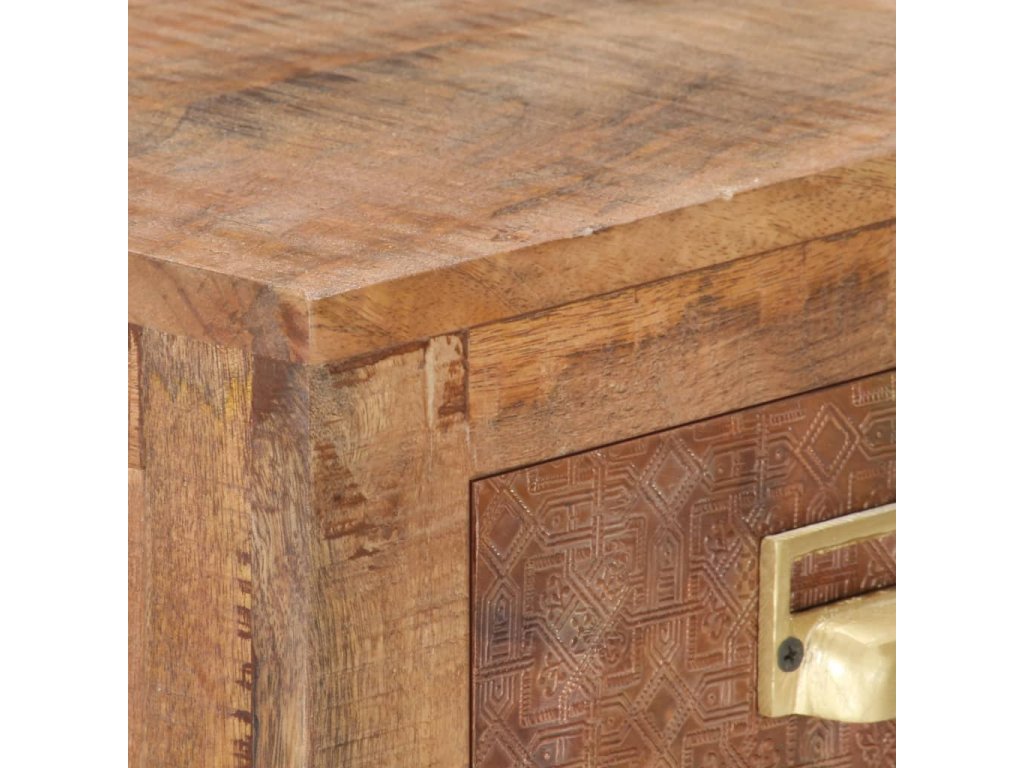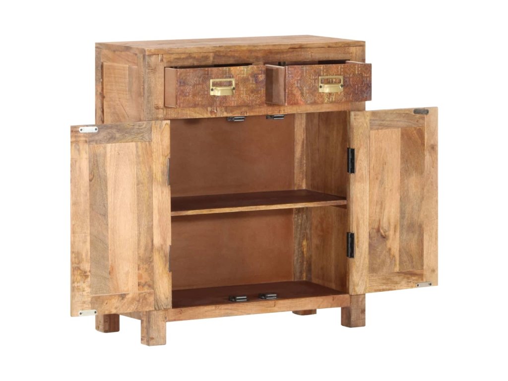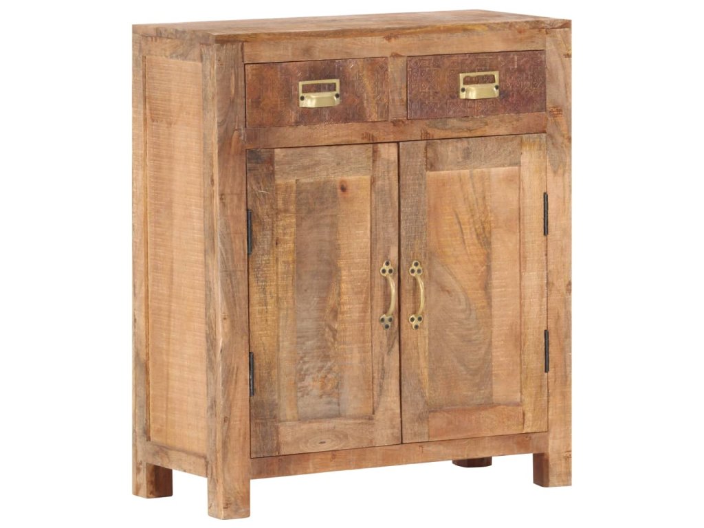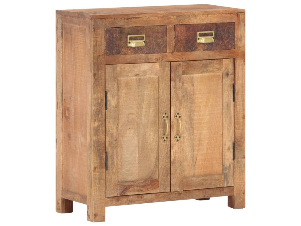 Skříňka je vyrobená z masivního hrubého mangovníkového dřeva, je tedy mimořádně stabilní a odolná. Mangovníkové dřevo je husté robustní tvrdé dřevo, které má na povrchu krásné hnědé a zlaté pruhy a kontury. Tento dřevěný příborník se 2 zásuvkami a 2 dvířky nabízí spoustu prostoru pro ukládání vašich časopisů, knih, dekorací, stejně jako celé řady dalších menších věcí, kde je budete mít neustále po ruce. Design dřevěného rámu přispívá k industriálnímu vzhledu.