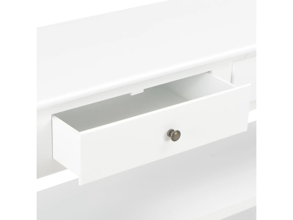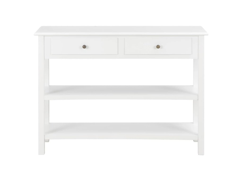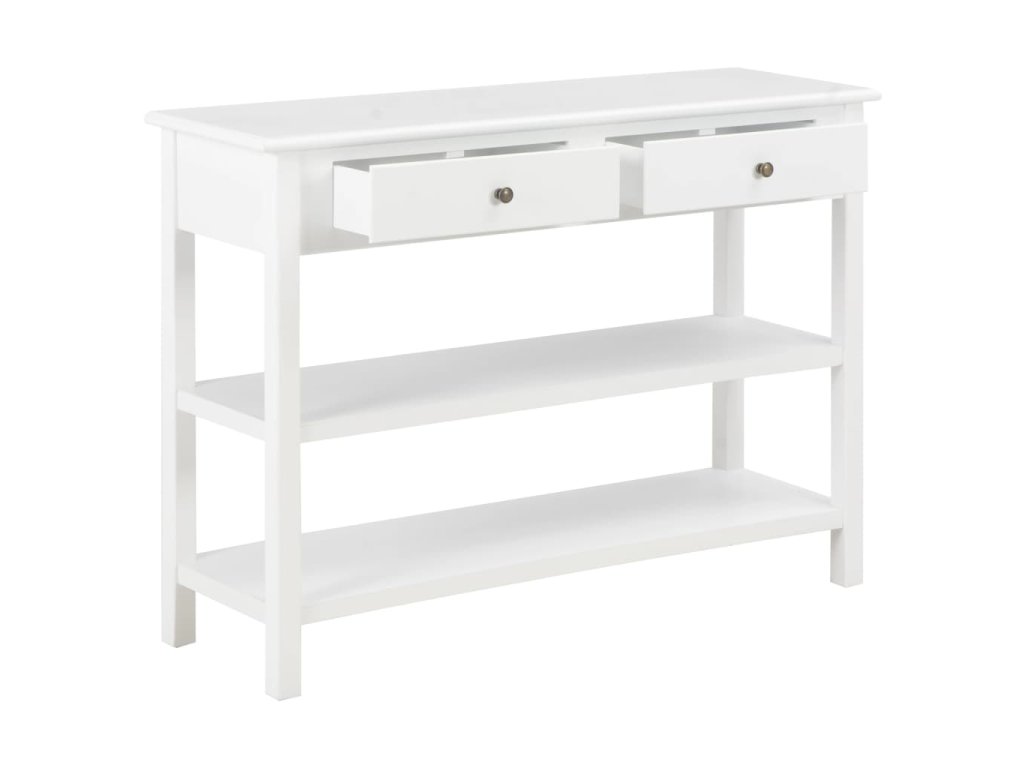 Tento příborník je vyrobený z MDF, takže je mimořádně robustní a odolný. Odkládací skříňka je vybavena 2 zásuvkami a 2 policemi a nabídne vám spoustu místa, kde si můžete přehledně uspořádat celou řadu různých věcí, jako jsou klíče, zápisníčky, psací potřeby a další drobnosti, které chcete mít po ruce. Prostorná horní deska se navíc skvěle hodí pro umístění multimediálních spotřebičů nebo pro vystavení dekorativních předmětů. Odkládací skříňka se snadno sestavuje.