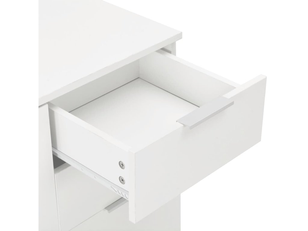 Skříňka se zásuvkami je vyrobena z dřevotřísky s vysoce lesklou bílou povrchovou úpravou. Vyniká proto svým rafinovaným vzhledem a zároveň je mimořádně stabilní a odolná. Najdete v ní 2 zásuvky pro různé předměty, které by jinak povalovaly kolem. Příborník s lesklým povrchem se snadno čistí.