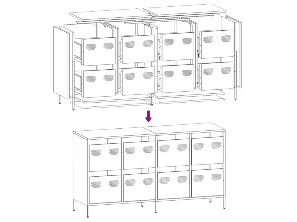 Tento příborník s praktickým designem je atraktivní přírůstek do vaší domácnosti.
