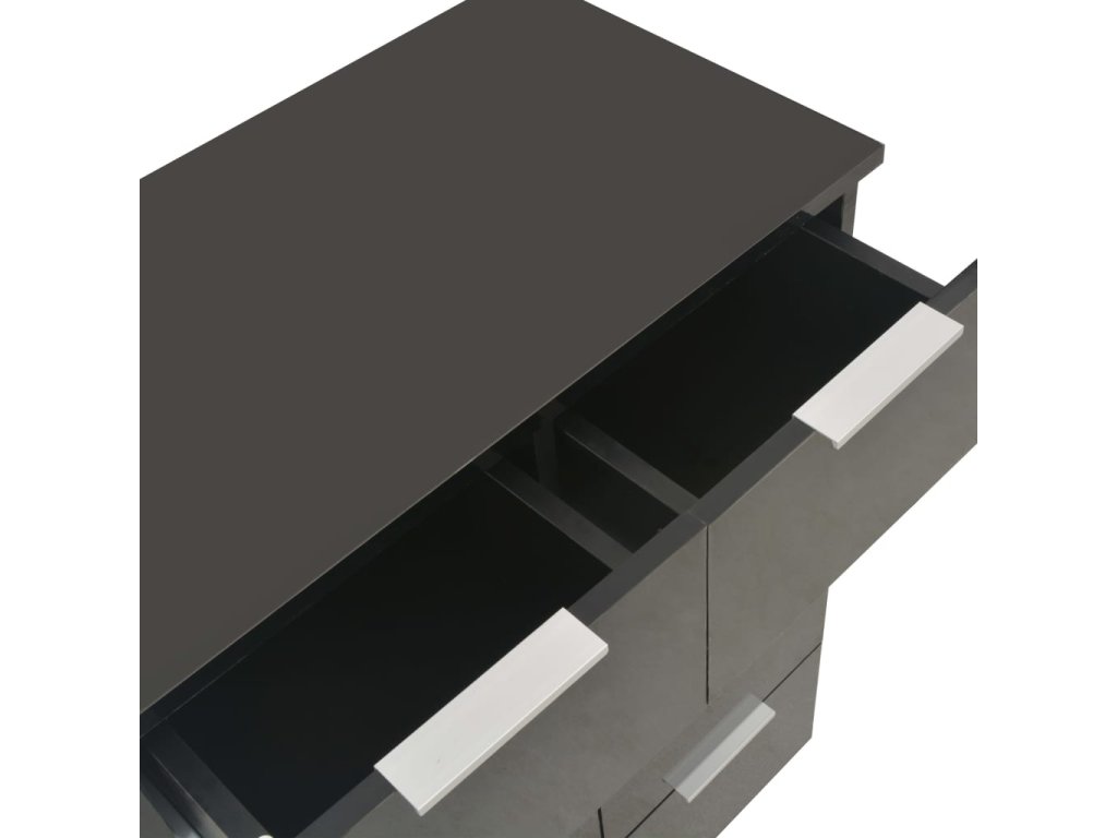 Skříňka se zásuvkami je vyrobena z kompozitního dřeva s vysoce lesklou povrchovou úpravou. Vyniká proto svým rafinovaným vzhledem a zároveň je mimořádně stabilní a odolná. V příborníku navíc najdete 8 zásuvek, které vám poskytnou spoustu místa, kde si budete moct uschovat různé předměty, které by se jinak povalovaly kolem. Tato úložná skříňka s vysoce lesklým povrchem se snadno čistí.