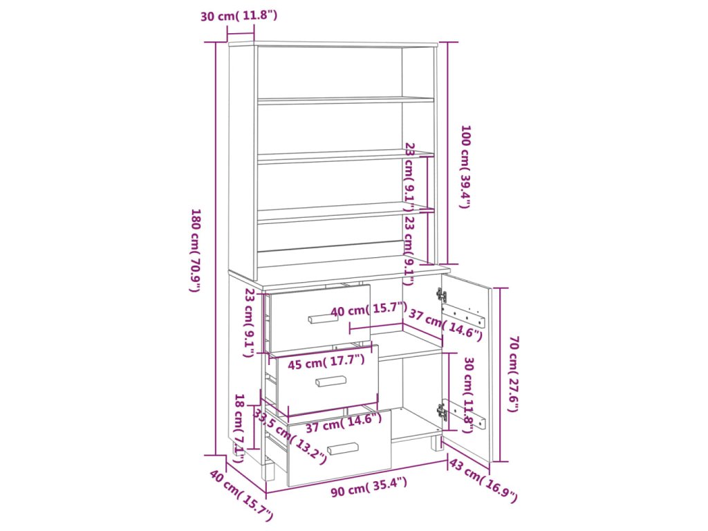 Tento příborník je vyroben z masivního borového dřeva, je tedy stabilní a odolný. Je vybaven 1 dvířky, 3 hladce výsuvnými zásuvkami a 3 stabilními policemi, takže poskytuje dostatek úložného prostoru pro přehledné uložení různých každodenních nezbytností, které tak budete mít neustále po ruce. Robustní horní deska je ideální pro vystavení dekorativních předmětů, fotorámečků nebo pokojových rostlin.