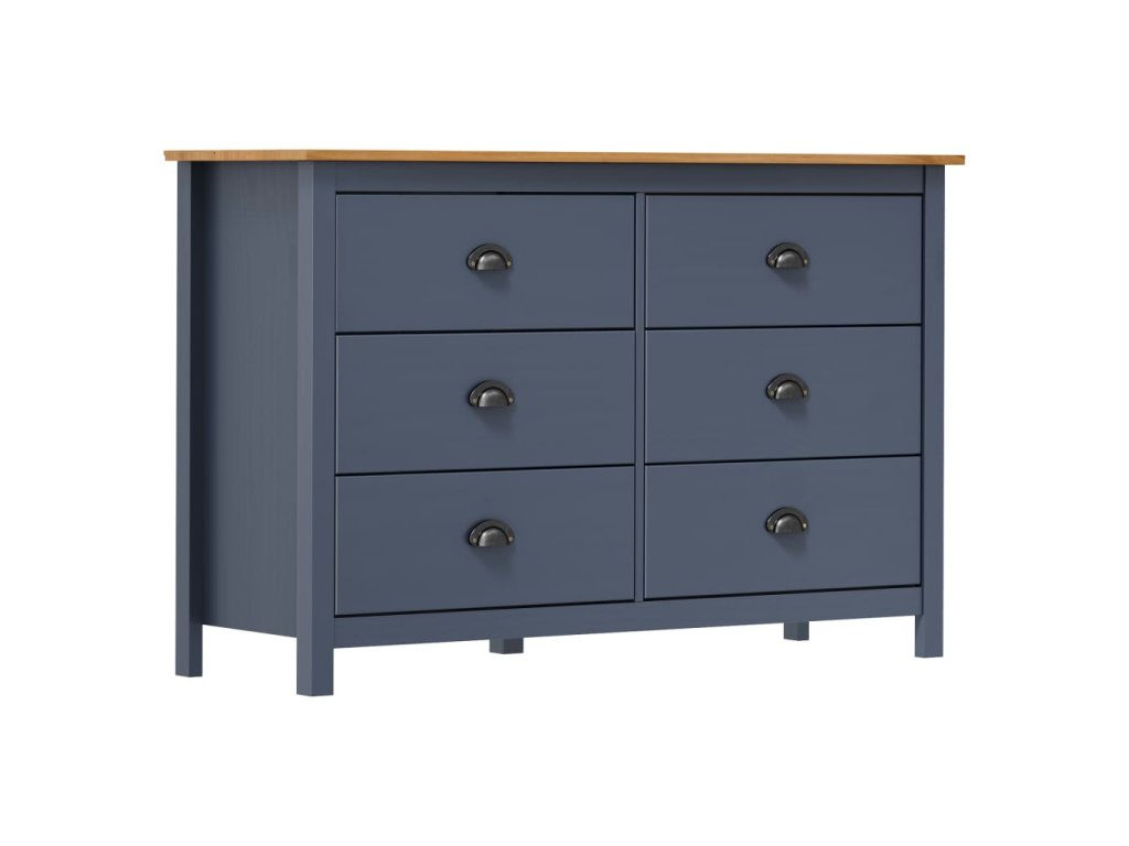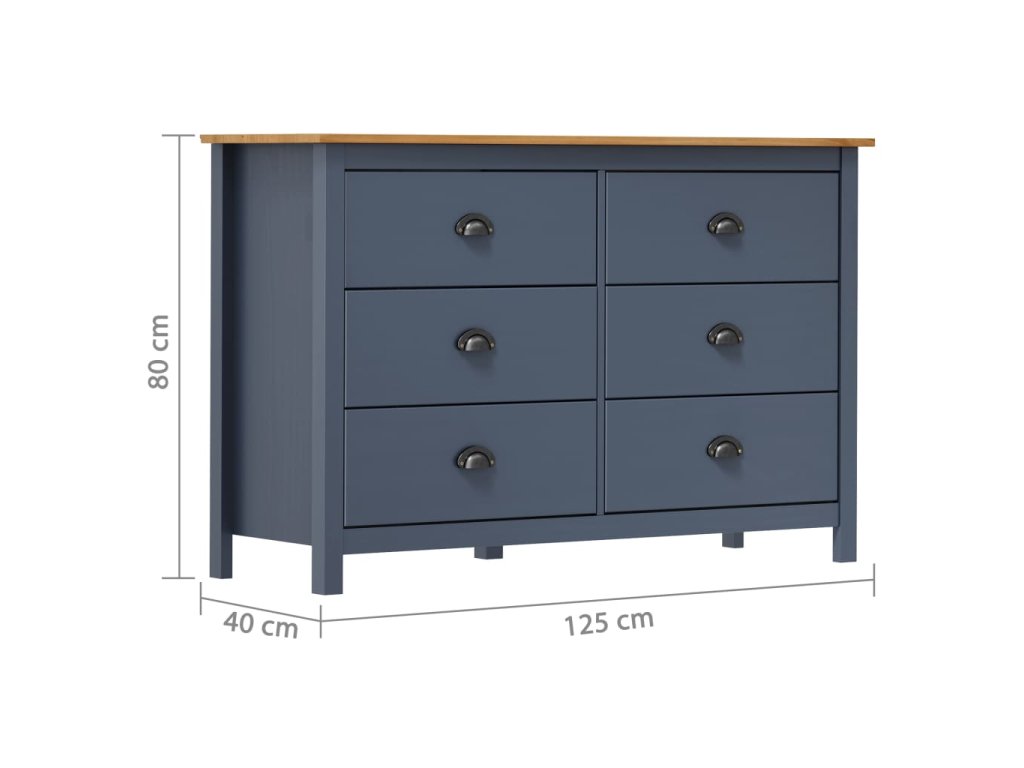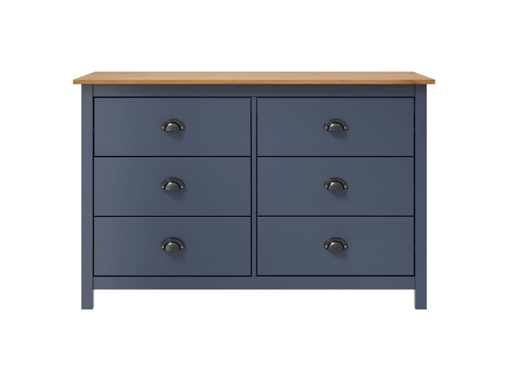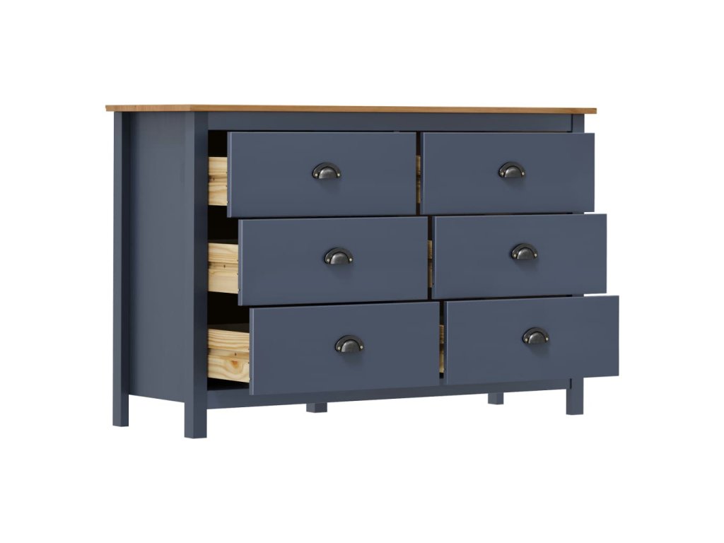 Tato odkládací skříňka je zhotovená z masivního borového dřeva, takže je mimořádně stabilní. Má 6 zásuvek s hladkým otevíráním, čímž vám poskytne dostatek místa pro různé předměty, kde je budete mít na dosah ruky. Široká horní část vám poslouží k vystavení mís s ovocem nebo dekorativních předmětů, jako jsou fotorámečky nebo pokojové rostliny.