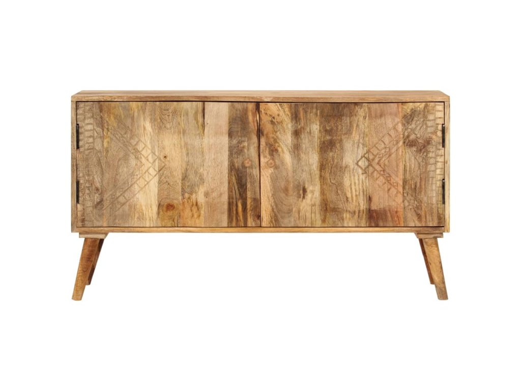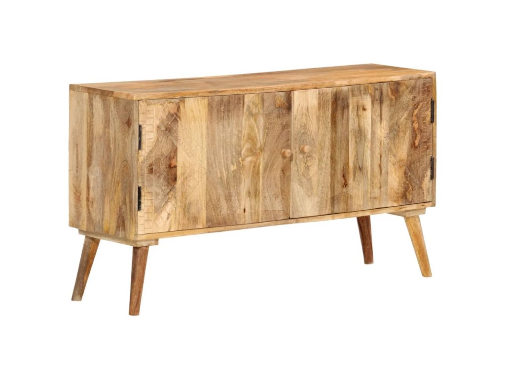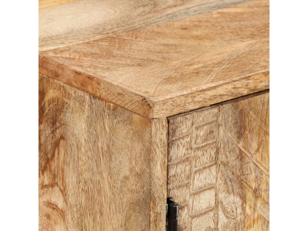 Příborník je vyroben z masivního mangovníkového dřeva a je vysoce stabilní a odolný. Pevná horní deska je ideální k vystavení dekorativních předmětů, jako jsou vázy či pokojové rostliny. Skříňka poskytuje dostatek úložného prostoru pro úhledné uspořádání různých předmětů. Jemně vyřezávaný vzor dodává příborníku jedinečný vzhled. Každá fáze výrobního procesu se provádí s největší péčí, ať už se jedná o leštění, natírání nebo lakování. Sestavení je snadné.