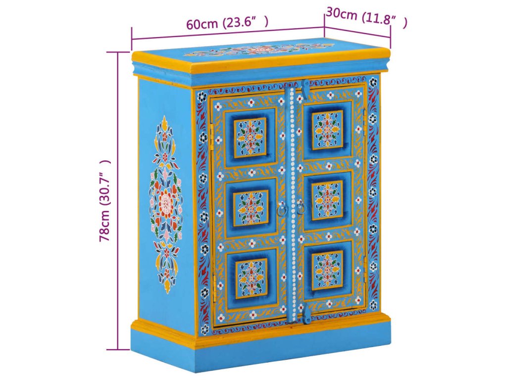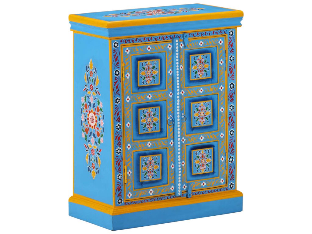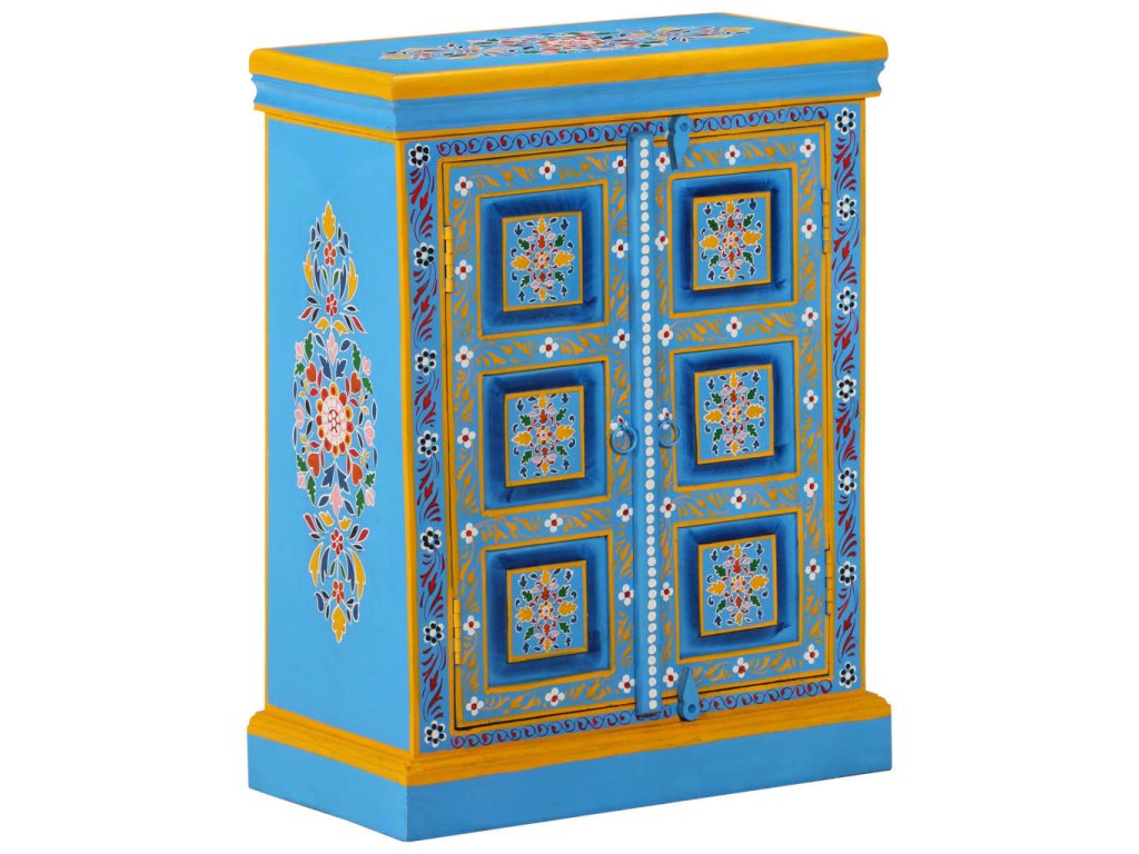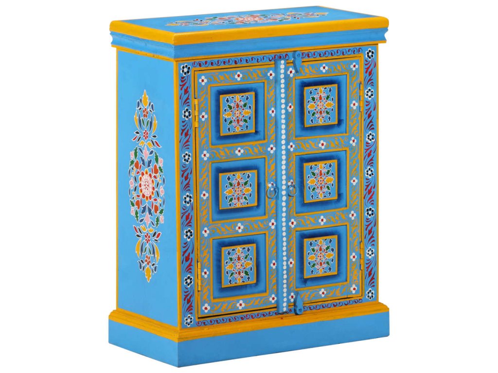 Příborník masivní mangovníkové dřevo tyrkysový ručně malovaný 244838