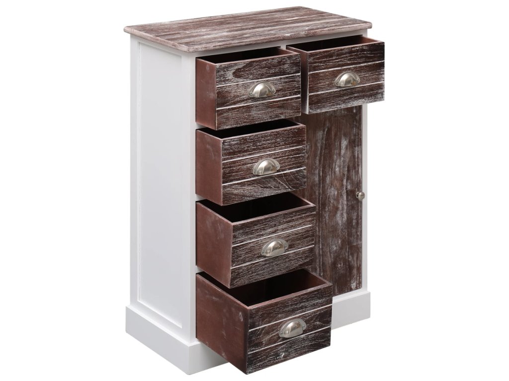 Tento příborník je vyroben z kvalitního dřeva pavlovnie a topolu a MDF desky, je tedy mimořádně robustní a má dlouhou životnost. V 10 zásuvkách a 2 skříňkách najdete spoustu místa, kde si můžete přehledně uspořádat celou řadu různých věcí, jako jsou klíče, poznámkové bloky, knížky, časopisy nebo jiné drobnosti a nezbytnosti. Prostorná horní deska se navíc skvěle hodí pro umístění multimediálních spotřebičů nebo pro vystavení dekorativních předmětů. Příborníky můžete buď zkombinovat dohromady, nebo je použít odděleně jako dvě samostatné skříňky.