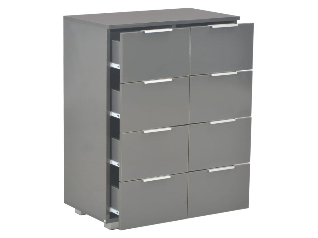 Skříňka se zásuvkami je vyrobena z kompozitního dřeva s vysoce lesklou povrchovou úpravou. Vyniká proto svým rafinovaným vzhledem a zároveň je mimořádně stabilní a odolná. V příborníku navíc najdete 8 zásuvek, které vám poskytnou spoustu místa, kde si budete moct uschovat různé předměty, které by se jinak povalovaly kolem. Tato úložná skříňka s vysoce lesklým povrchem se snadno čistí.