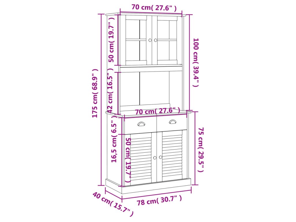 - Spousta úložného prostoru: Skříň je vybavena zásuvkami a přihrádkami, takže vám poskytne spoustu úložného prostoru, kam si můžete přehledně uschovat vaše šálky, nádobí a drobné dekorativní předměty.
