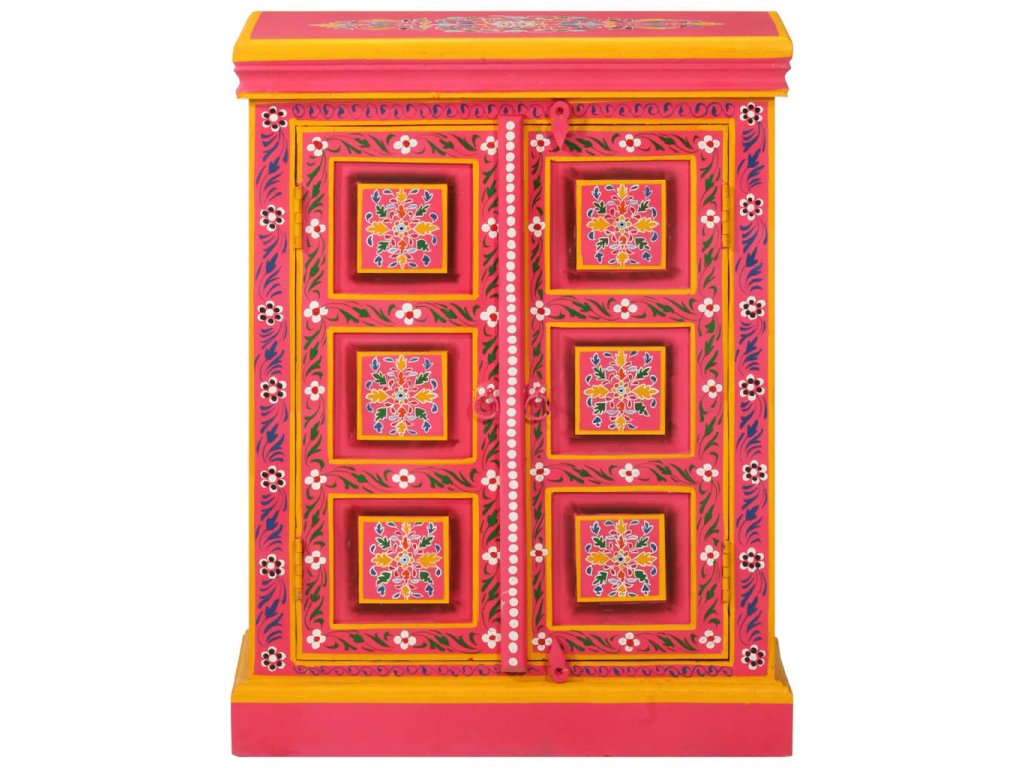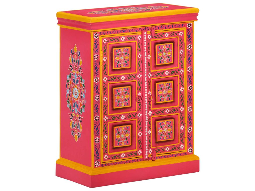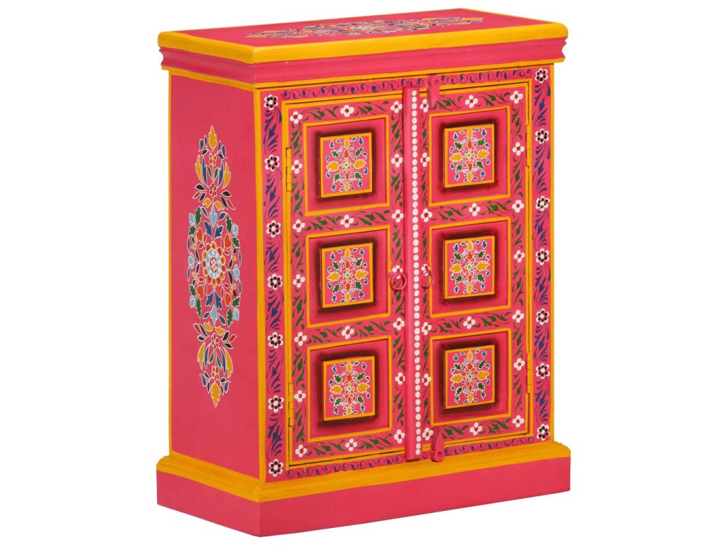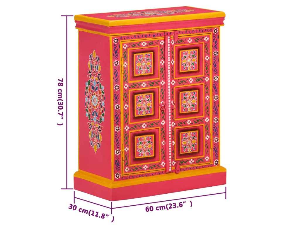 Příborník z masivního mangovníku ručně malovaný růžový 244839