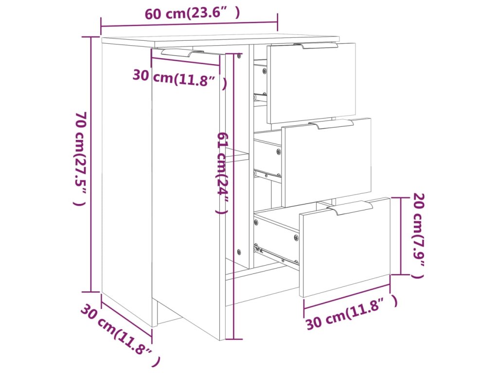 Příborníky 2 ks kouřový dub 60 x 30 x 70 cm kompozitní dřevo 3115793