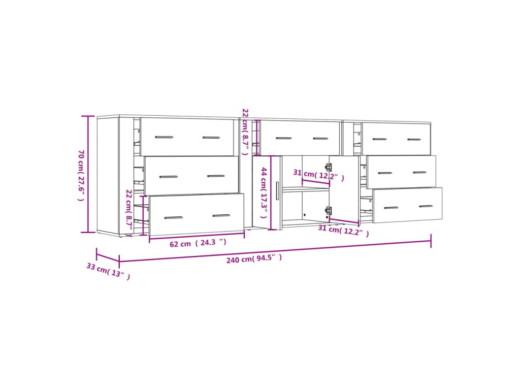 Příborníky 3 ks bílá kompozitní dřevo 3185423