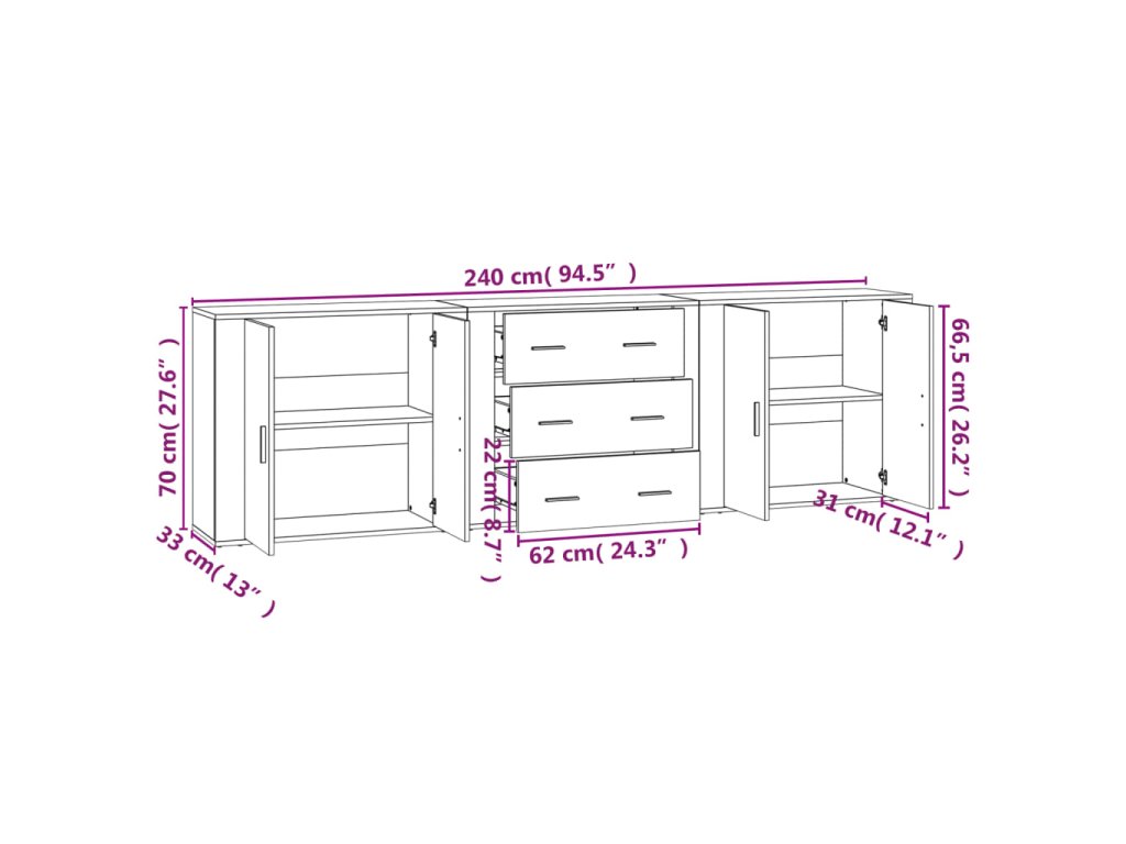 Příborníky 3 ks kouřový dub kompozitní dřevo 3185404