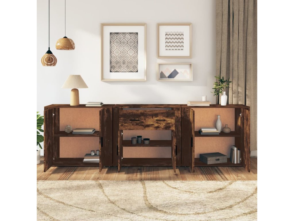 Příborníky 3 ks kouřový dub kompozitní dřevo 3185420