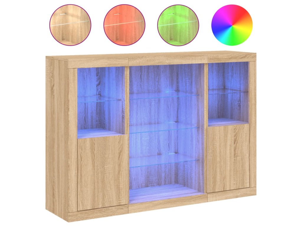 Příborníky s LED osvětlením 3 ks dub sonoma kompozitní dřevo 3209130