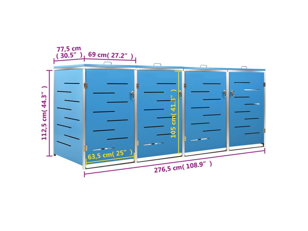 Přístřešek na čtyři popelnice 276,5x77,5x112,5 cm nerezová ocel 149569